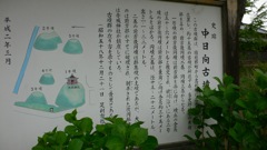 中日向古墳群は姥川沿いの前方後円墳2基と円墳3基からなる。1号墳の後円部の上に赤城神社が鎮座する。