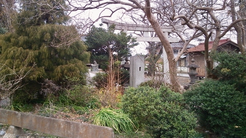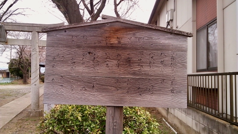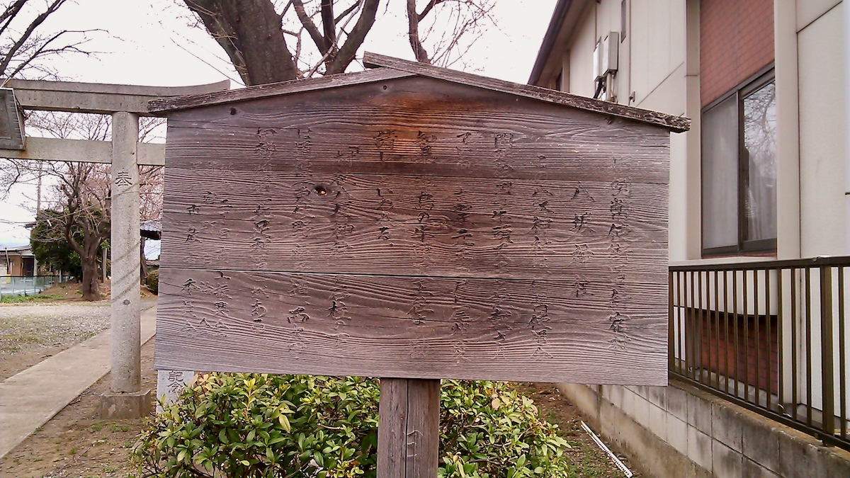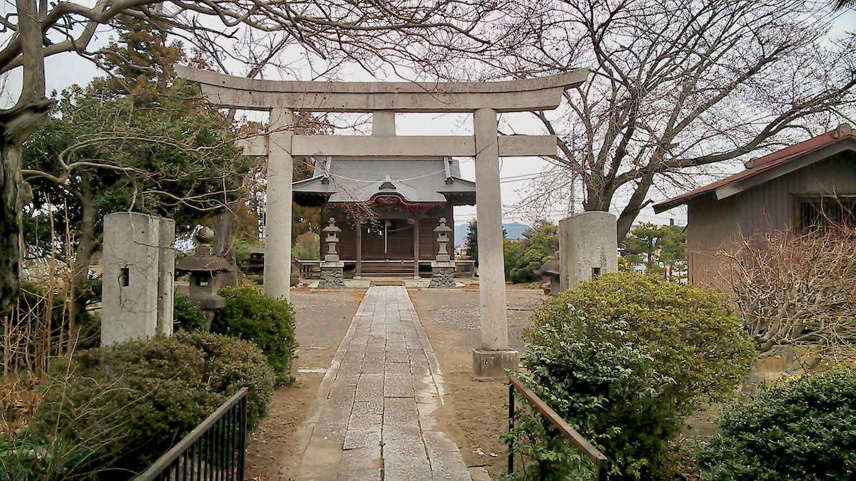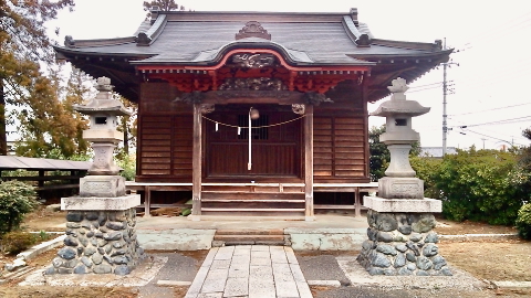 創建等不詳。拜殿の後ろの空いた窓を通して玉垣に囲まれた本殿石宮を拝す。219松田葉鹿線の足利市三和運動公園の北。付近に三和公民館。219号線沿いに立派な石製入口標識。
