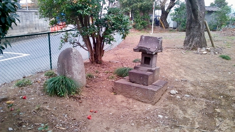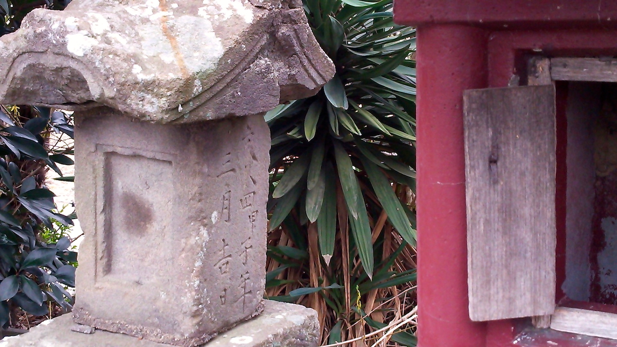 明治二年1869石祠の左の自然石に寛政三年1791の文字。