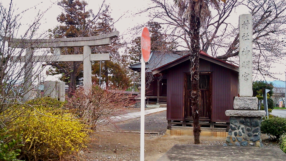 もと群馬県矢場川村大町。平成24年の石芋伝説の看板が建てられており,「芋の森神明宮」建立とあり,拝殿額が「芋森神社」で奉納されているのでGoogle地図に芋森神社で載せられたが,「神明宮」である。社号標は「村社神明宮」