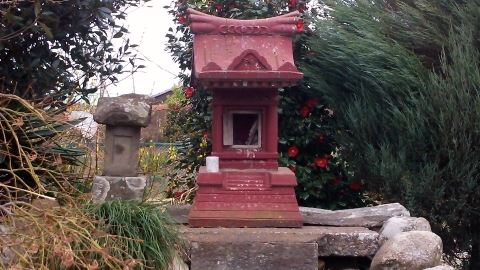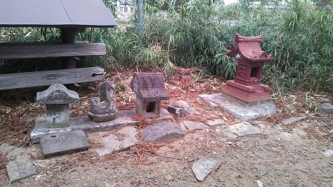 石鳥居,石段。小ぶりの石宮が祀られている。