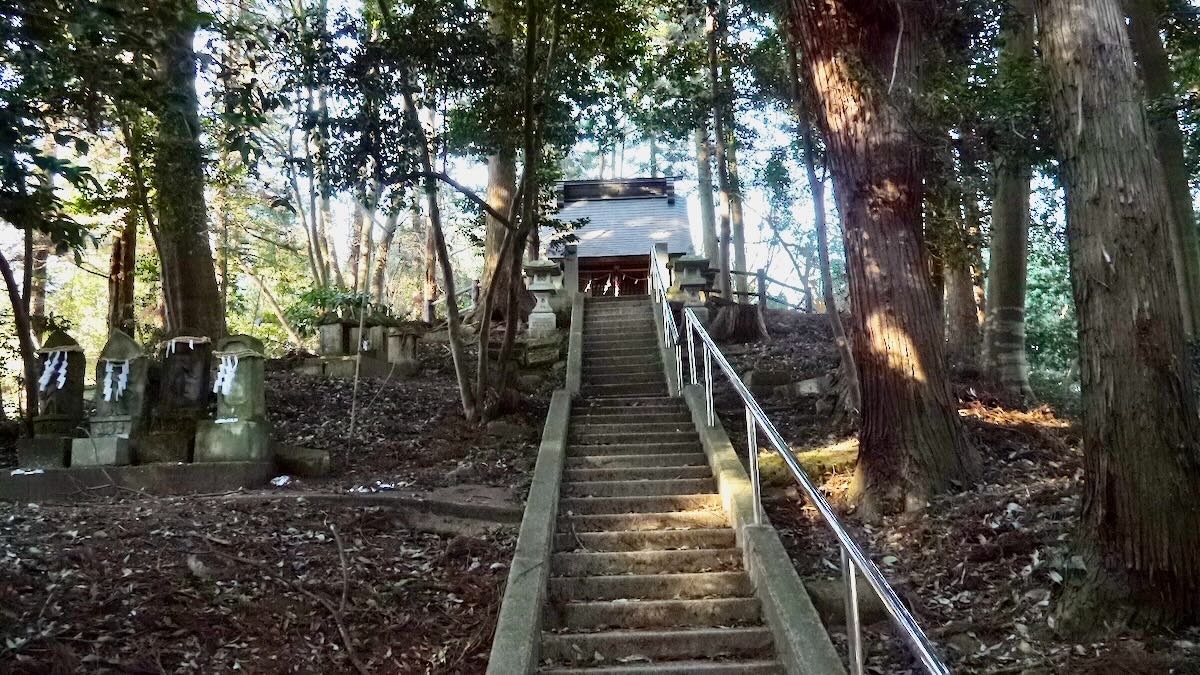 | 元文五庚申1740 | 古墳頂上に鎮座 | 二の鳥居から入口方向 |