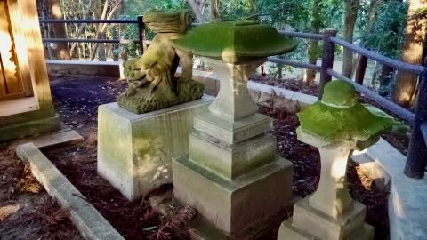 | 円形の玉垣 | 尻を立てた狛犬 | |