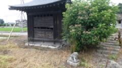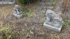 | 左手の石祠 | 八坂神社と読める | 鳥居右手の石像 |