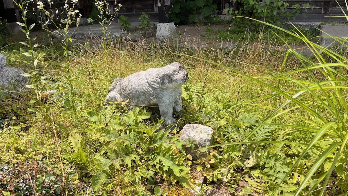 古い狛犬脇に文久元年1861辛酉十一月吉日石燈籠。