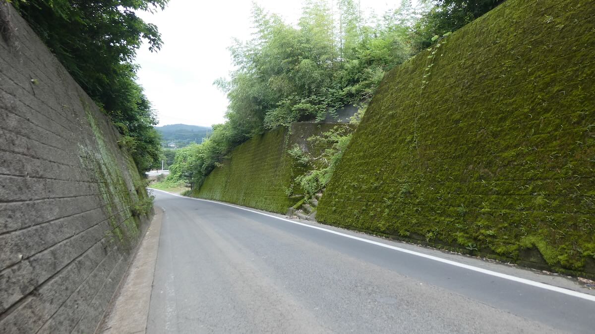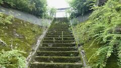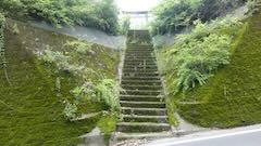 | 道路から屋根が少し | 切通の石段 |