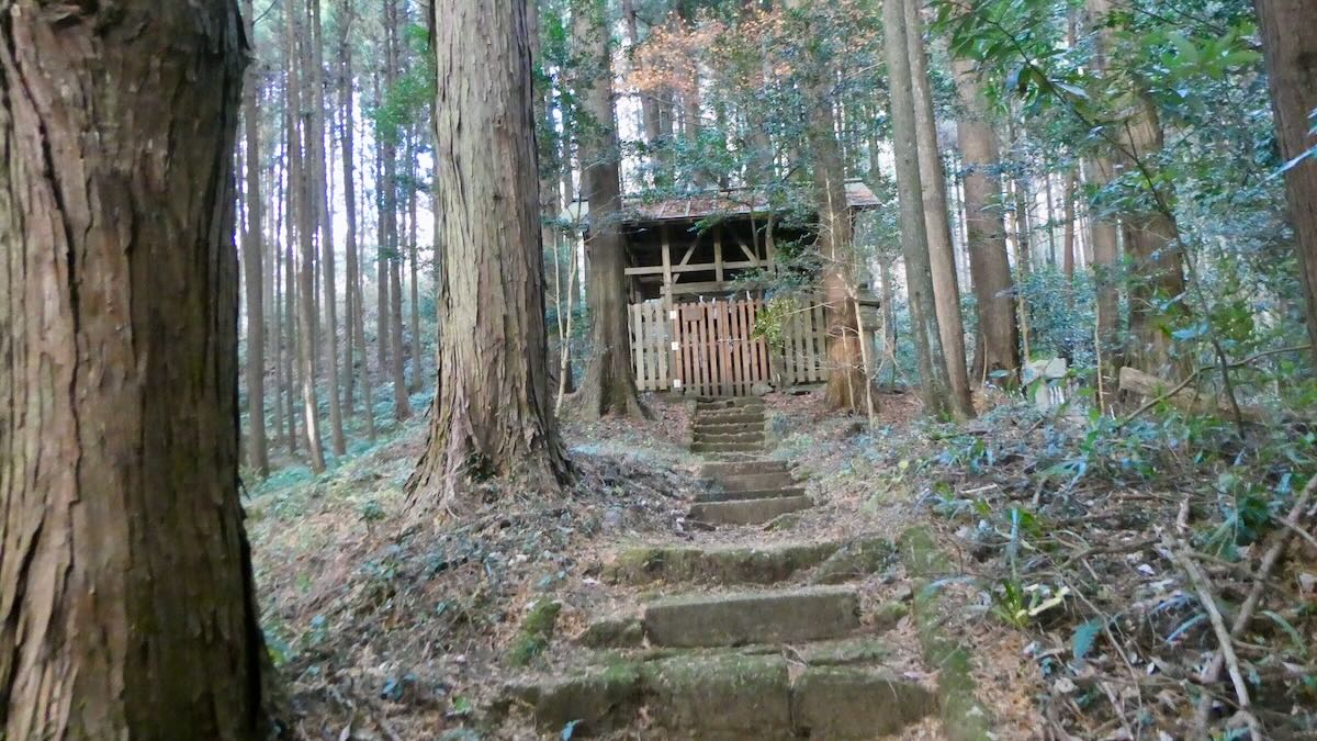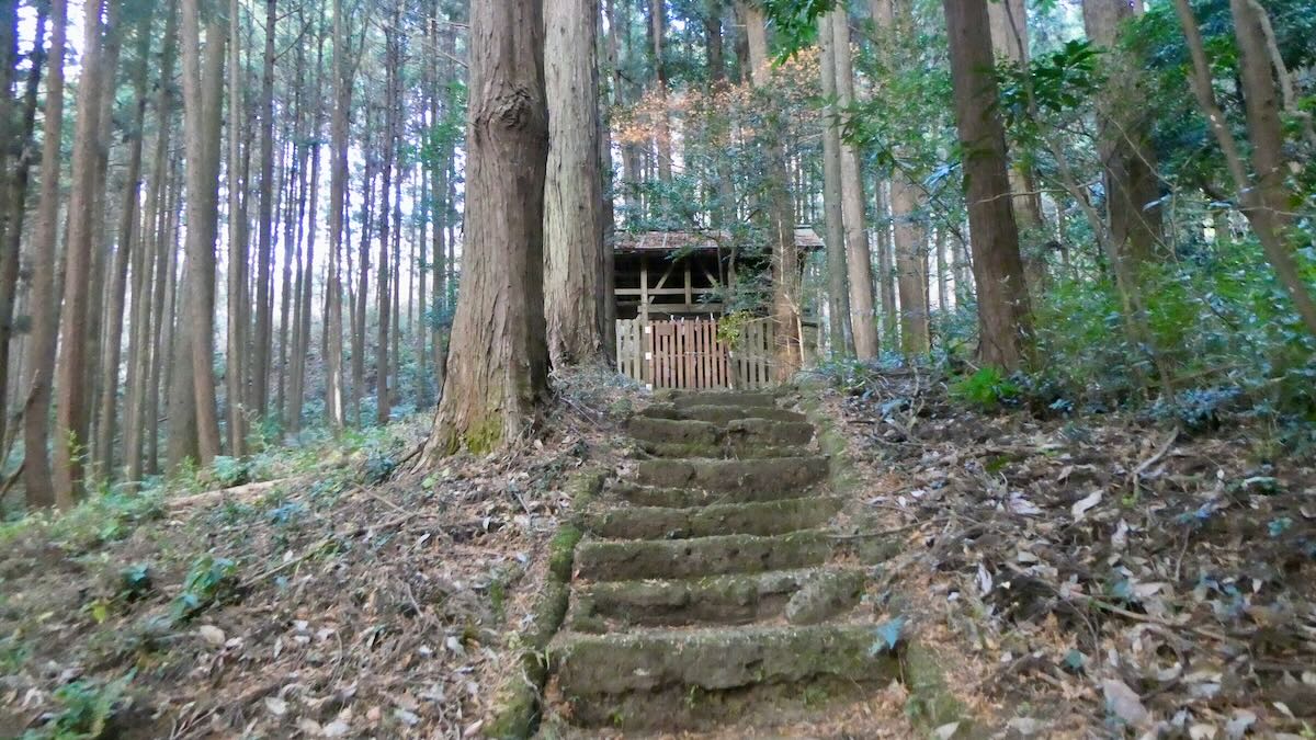 | 途中の石段 | かすかに見えてきた | 最後の石段 |