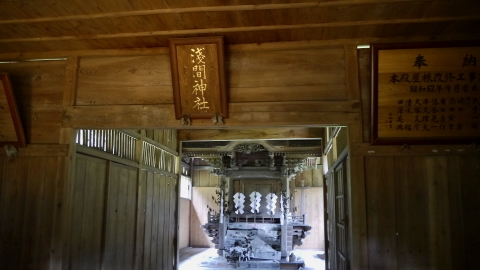 合併した浅間神社は上南摩町2636に鎮座した。御祭神表記が「開耶」でなく「咲夜」で木花咲夜姫命。合併碑でも区別して刻んである。元亀元年1570の創建。文政元年1818本殿再建。境内地150坪であった。南摩ダム建設で440年の歴史を閉じた。