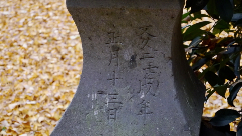 本殿手前に文久二壬戌年1862正月十三日と天保十三?年の石燈籠。