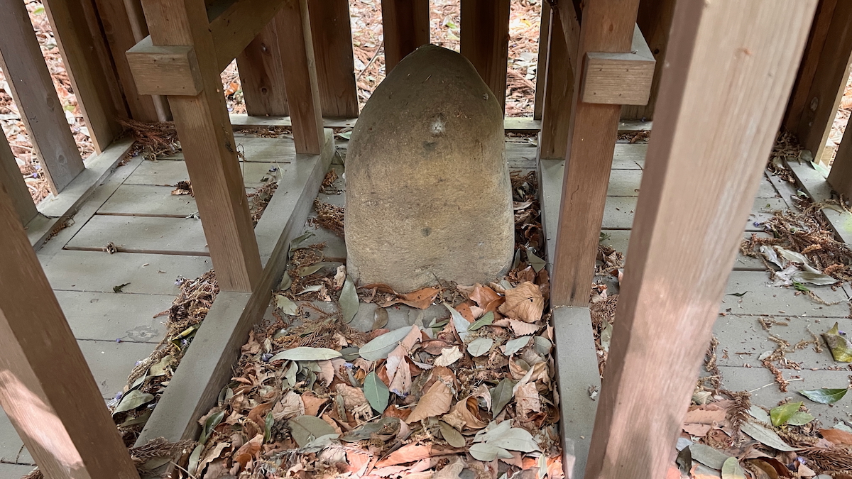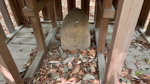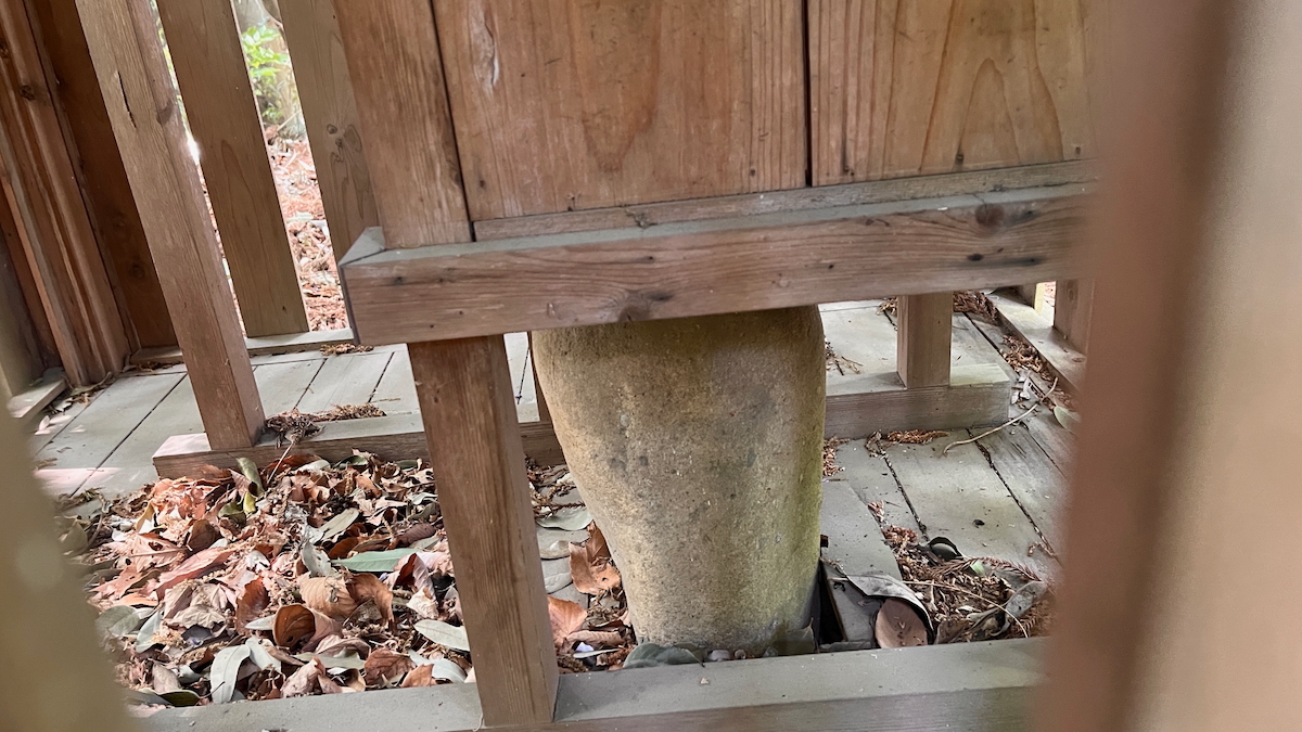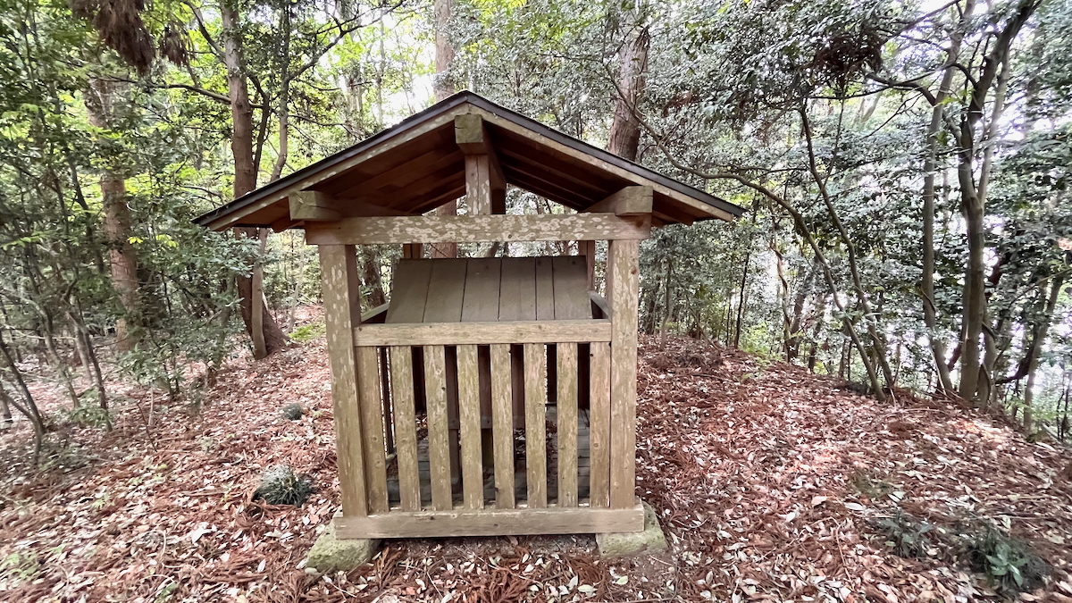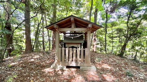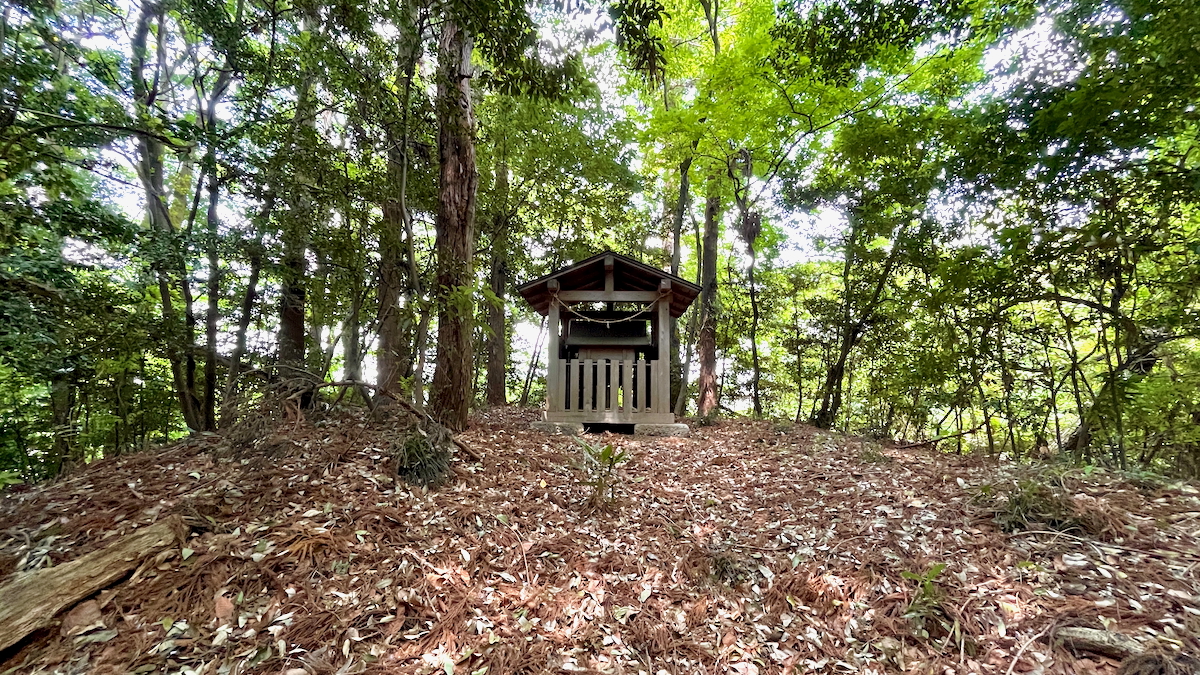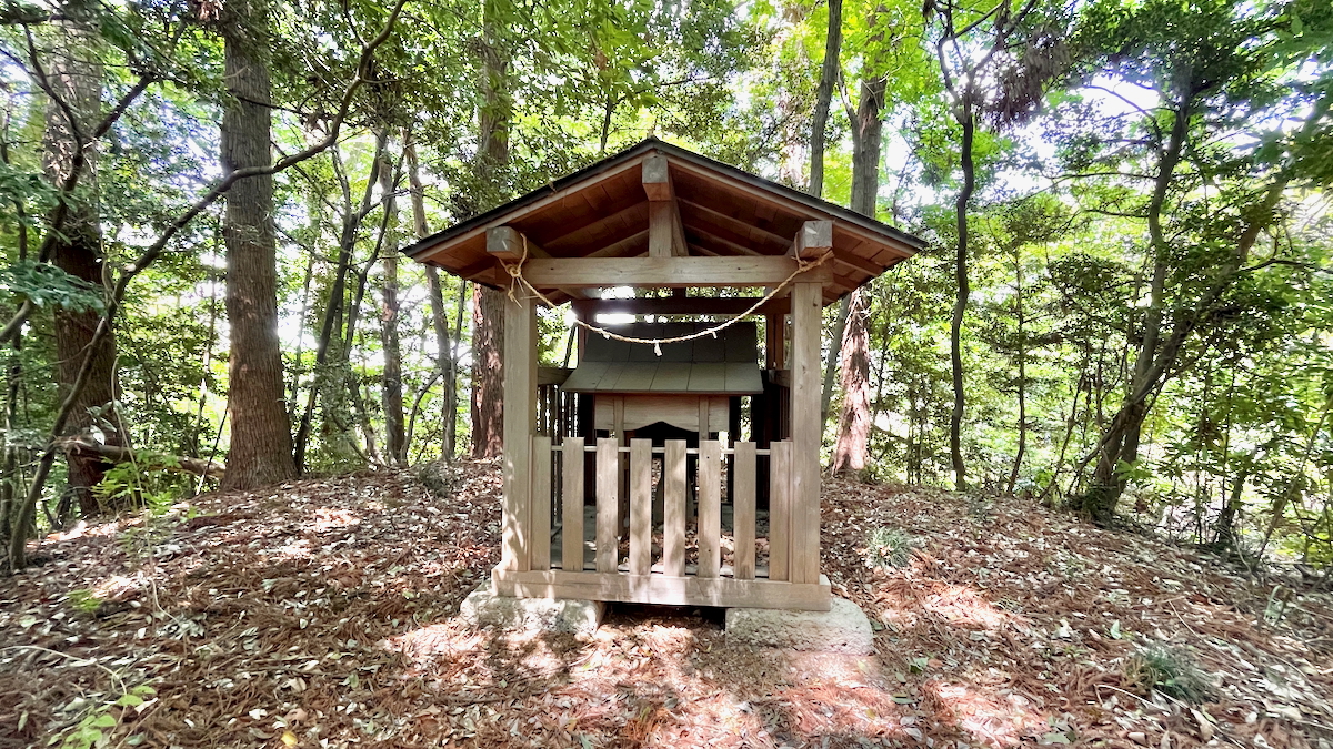 鬼怒川左岸の丘陵頂上の覆屋内に木製祠。石が祀られている。文字は刻まれていない。社号を示すものもない。墳墓守護,御霊守護のために祀られている祠。