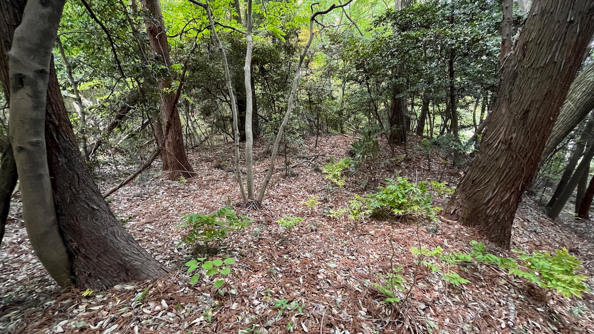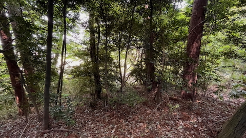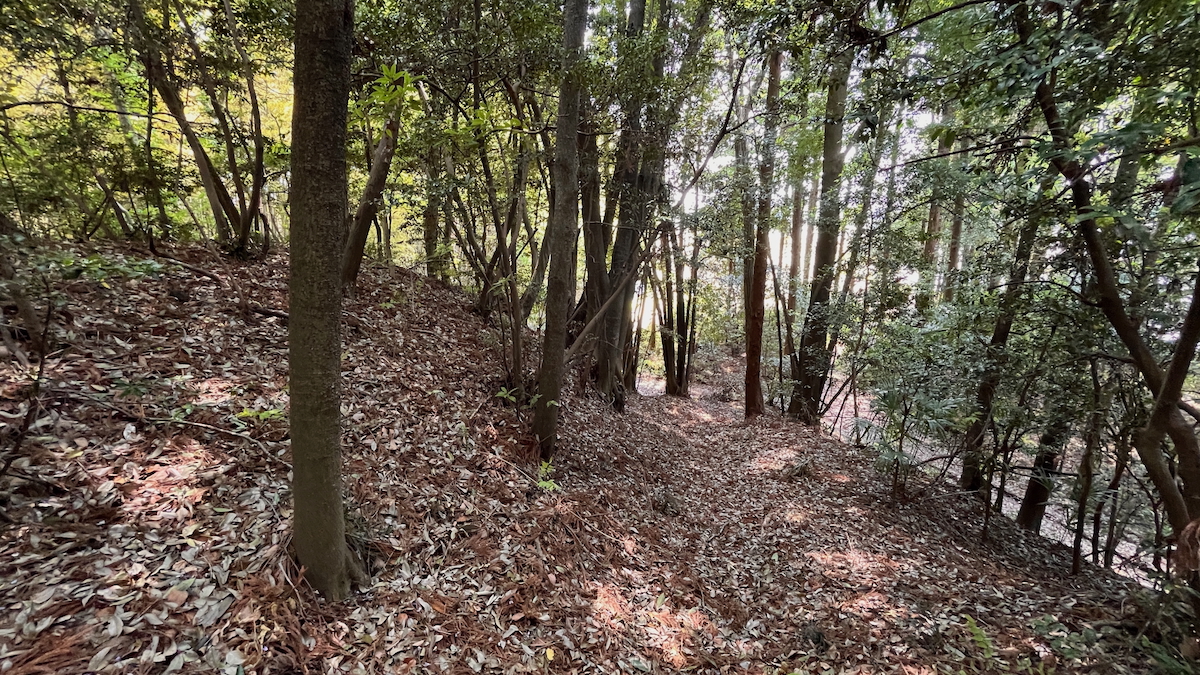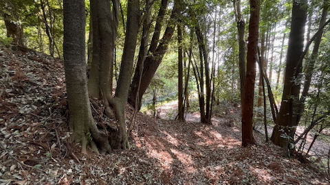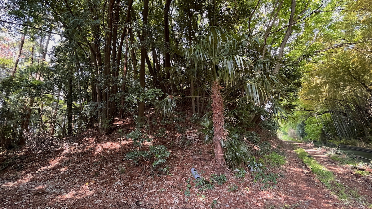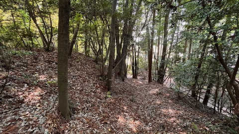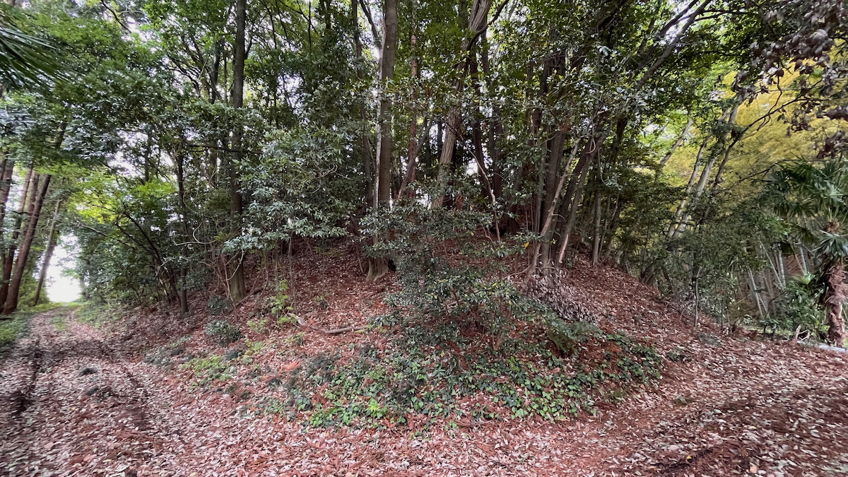 道路沿いに平成十年石鳥居,90度左折すると二の鳥居。右手の土盛りに平成十三年「旧愛宕神社跡」碑。同年に社殿・鳥居を移設し改築している。