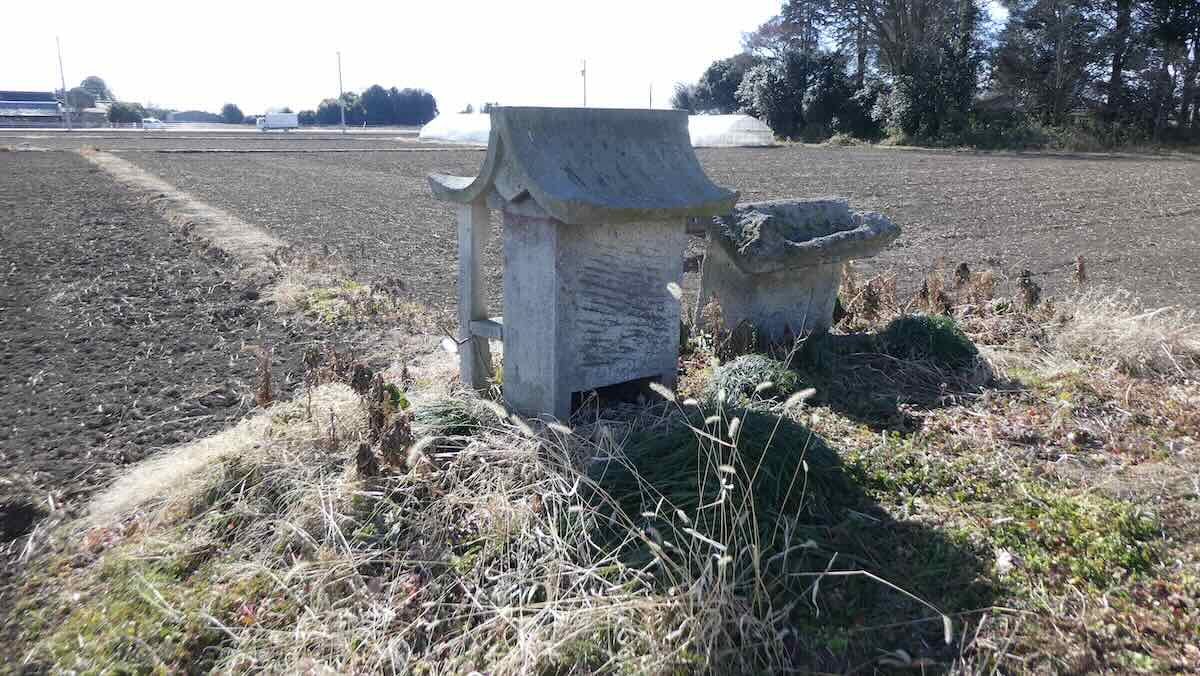 社殿右手奥に明治三年1870の石燈籠を備えた境外社のような不明の石宮がある。