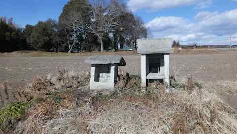 五行川のすぐ西,121号線から南下した水田地帯に鎮座。竹やぶの中に朱色両部鳥居。