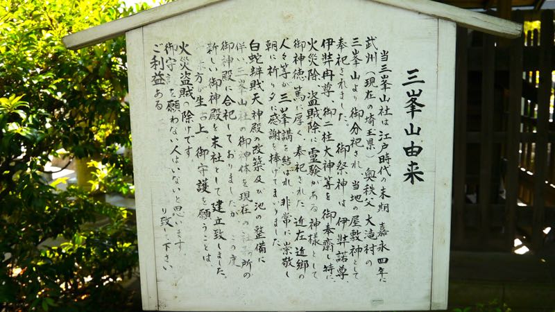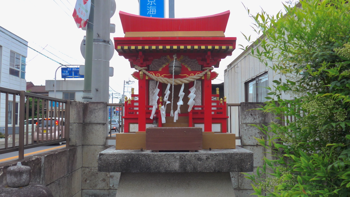 詳細は由来記写真を参照。大永二年1522安芸の宮島より御分霊を勧請して古池ヶ淵に創建。杜に住んでいた白蛇二匹の御利益で信仰を集め,とぐろを巻いた阿吽白蛇が奉納されている。