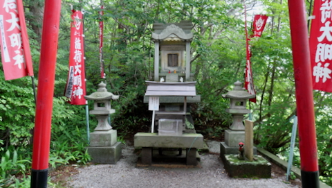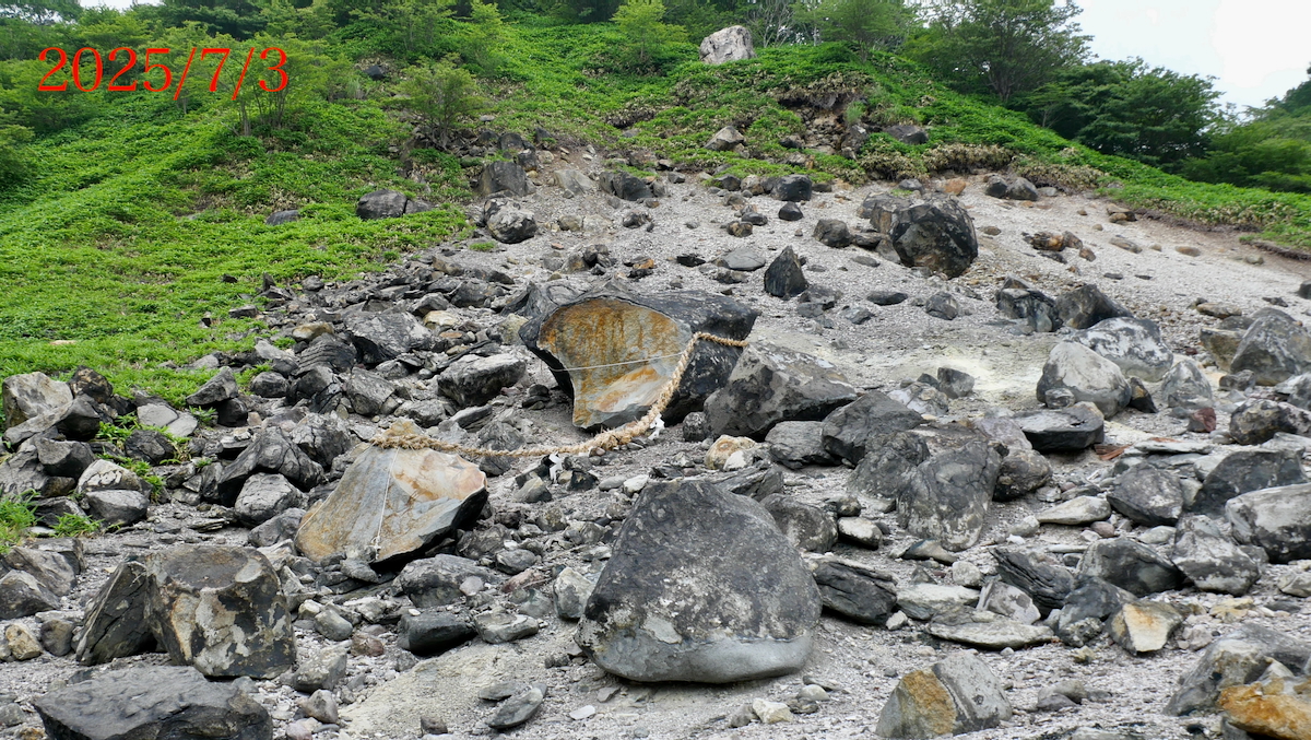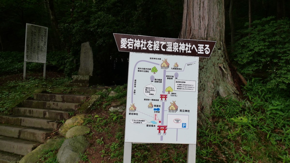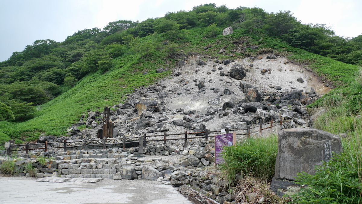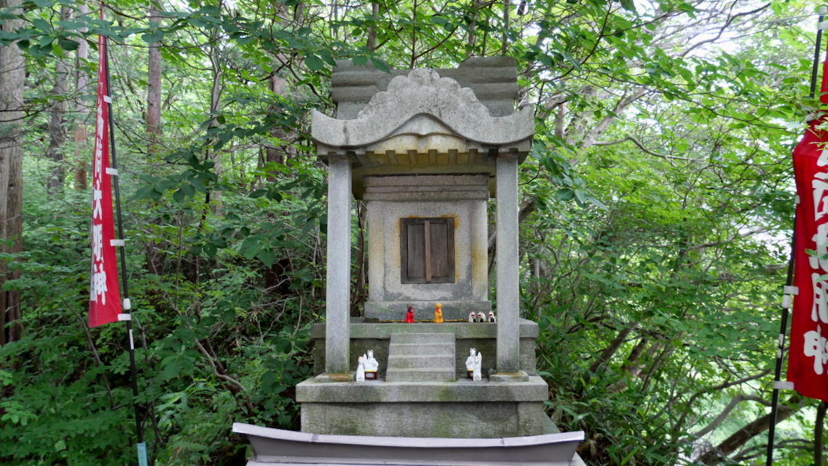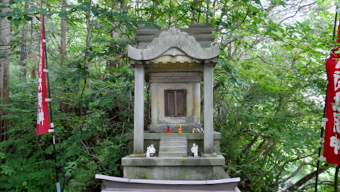 | かなり上ったことになる | 殺生石が見える | 駐車場トイレ裏の高湯山大權現 |