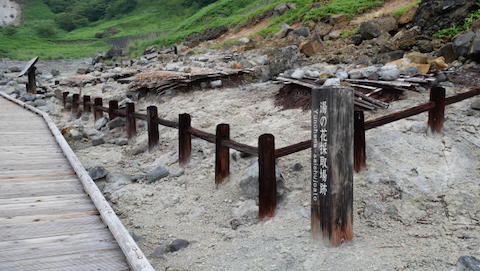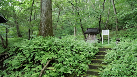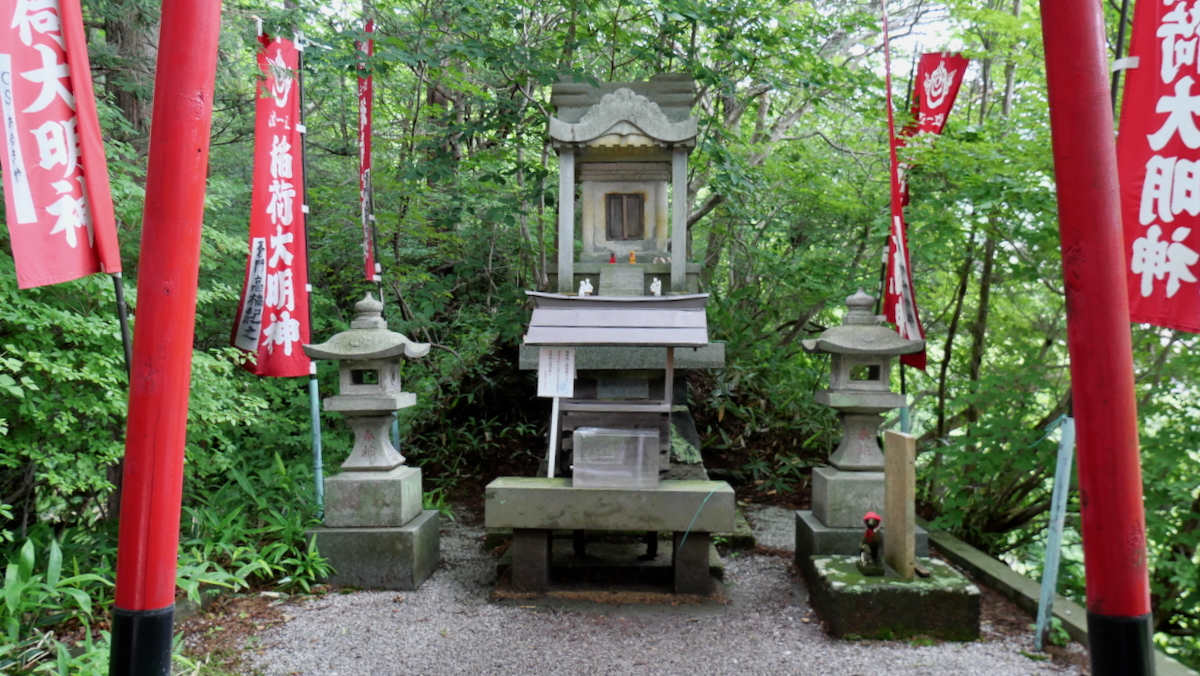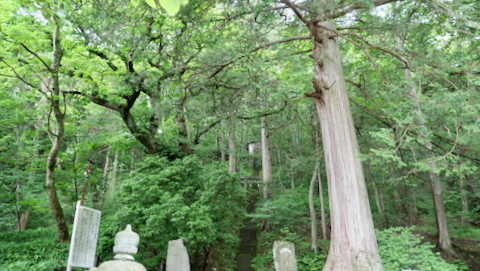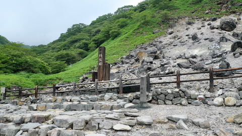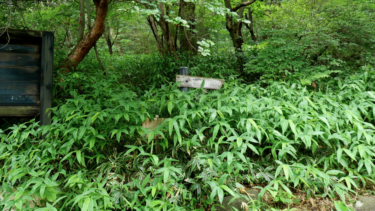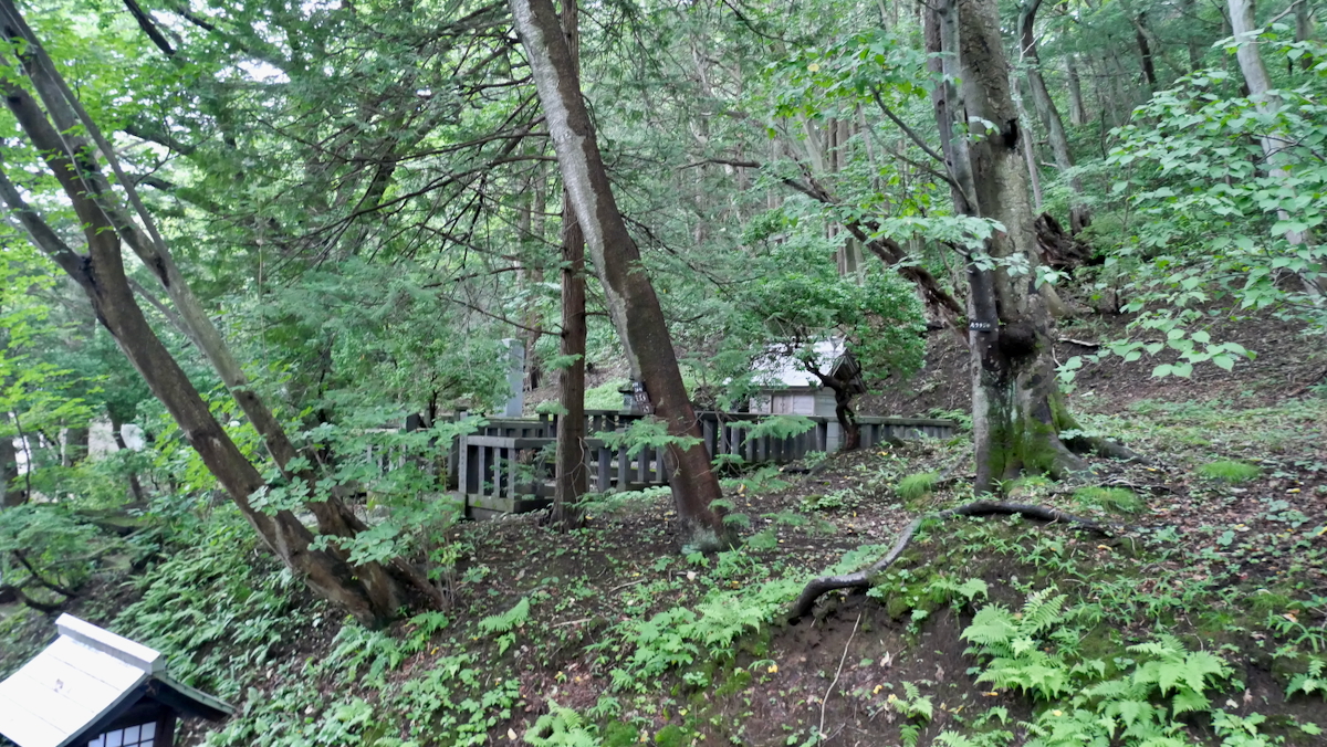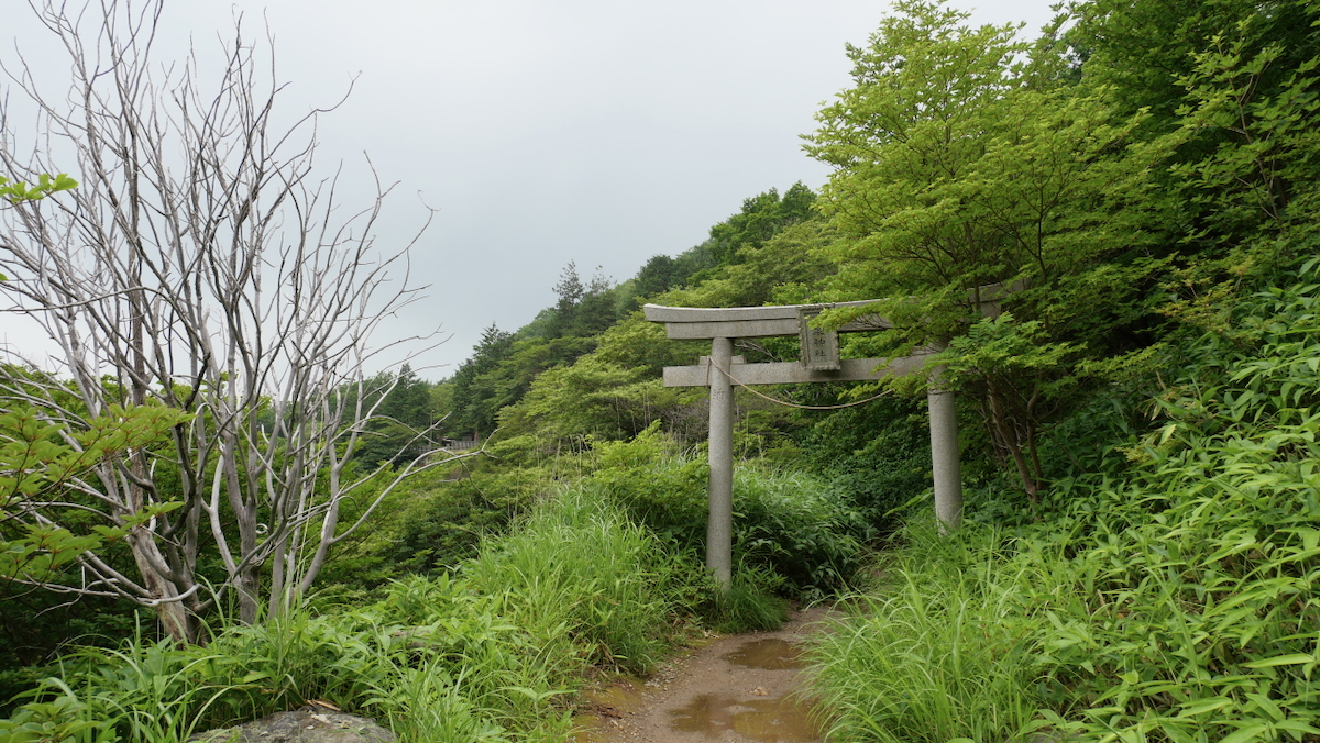| かなり上ったことになる | 殺生石が見える | 駐車場トイレ裏の高湯山大權現 |