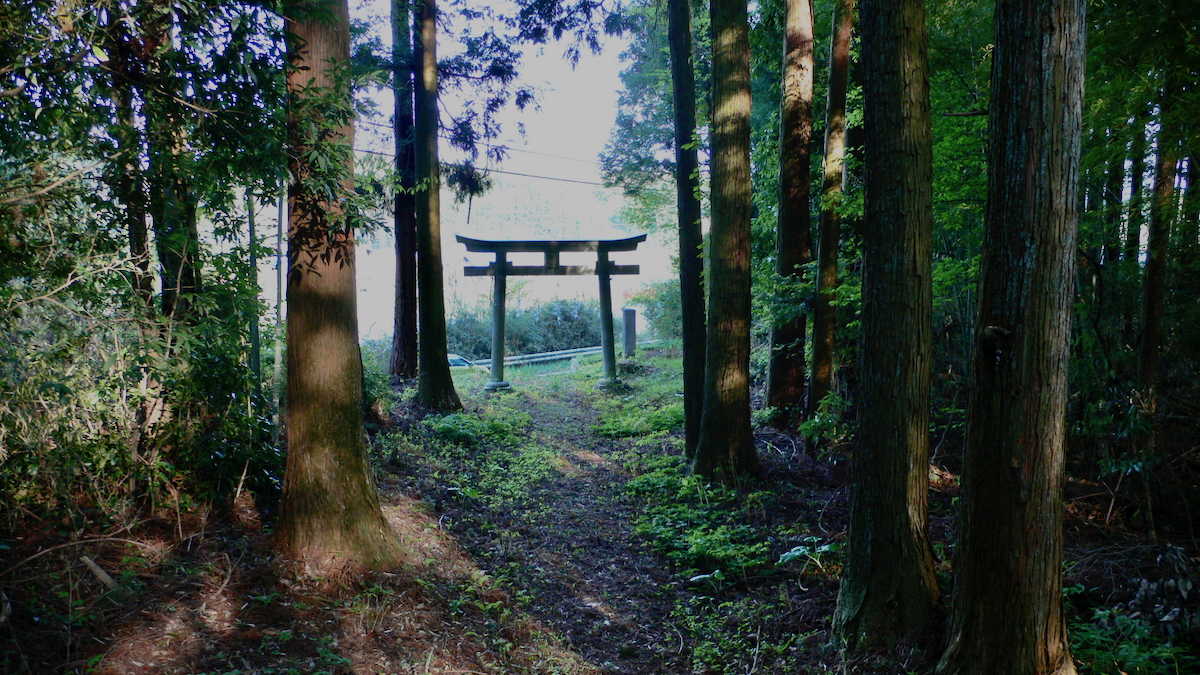 すぐ北の寺子乙2659に石鳥居があり,愛宕神社が森の中に鎭座。