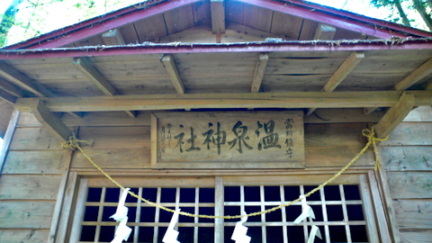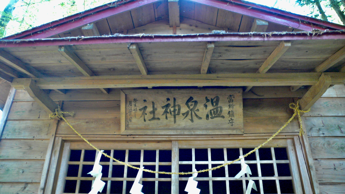 那須郡那須村大字寺子鎭座 村社溫泉神社 祭神大己貴命 建物本社間口一尺四寸奥行二尺八寸 末社一社 氏子三十一戸 本社創建詳かならず 社域百五十坪字高野内にあり