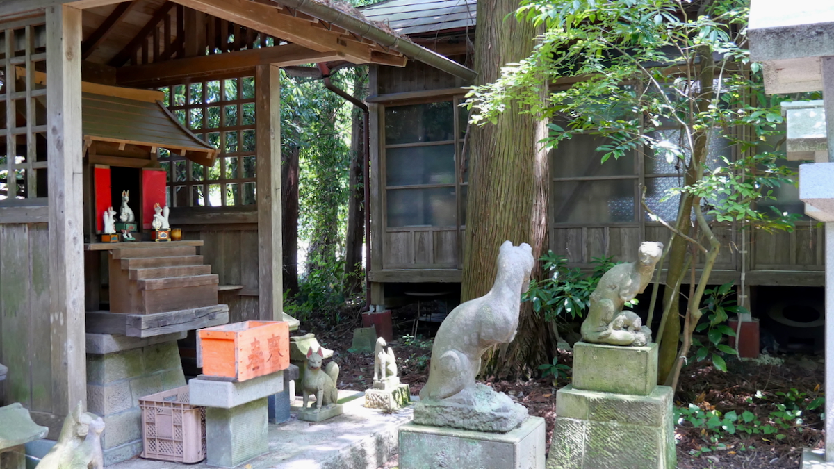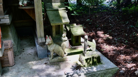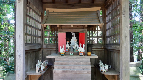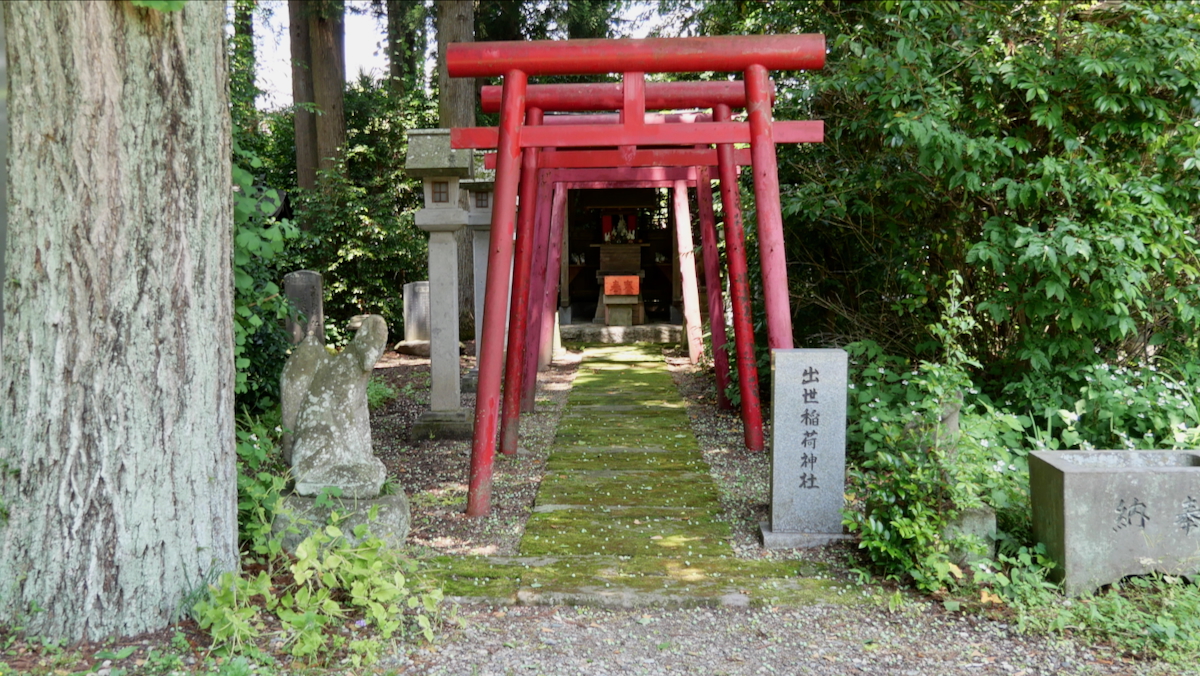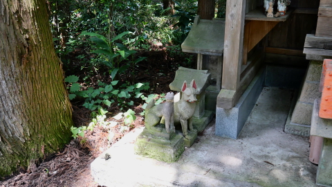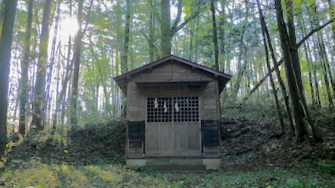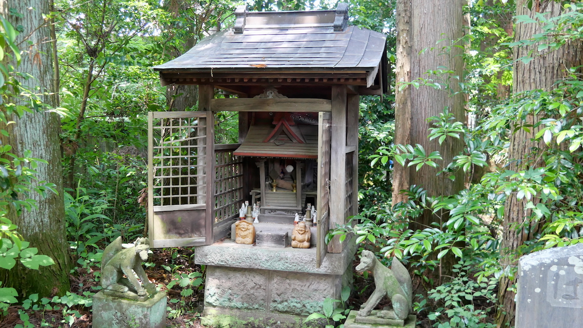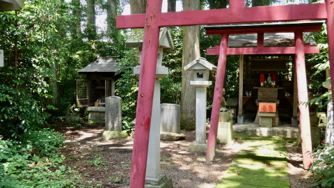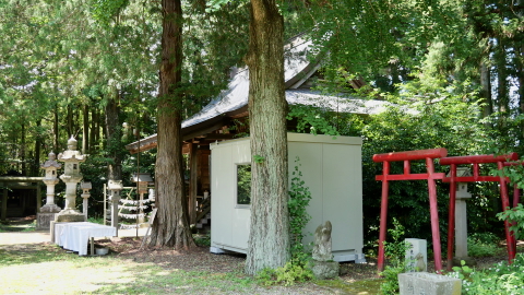 スガイ沢から倉稲魂命の稲荷神社,屋敷廻から大日孁貴の神明宮が境内社のまま移ってくる。