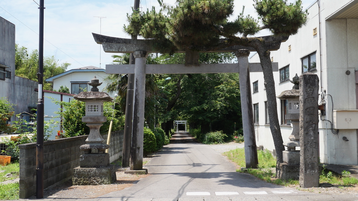黒磯の北東,那須チサンゴルフ場の北,田中小学校の手前。地図には「田中神社」で載っているので注意。