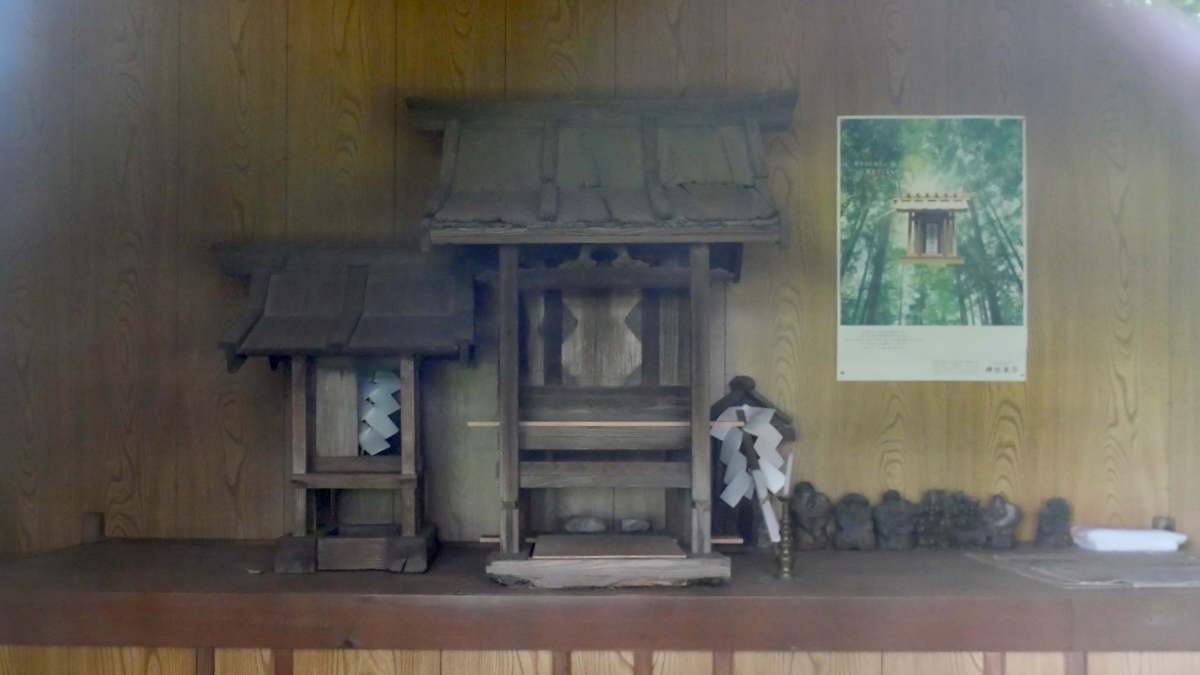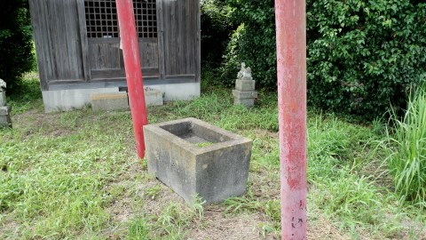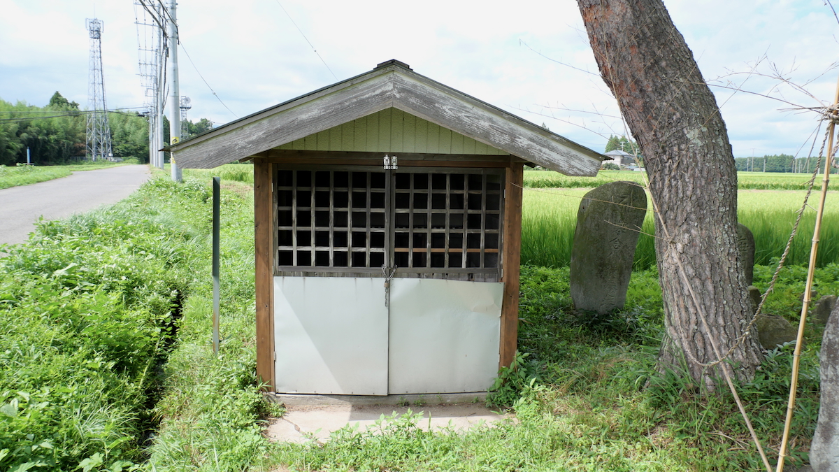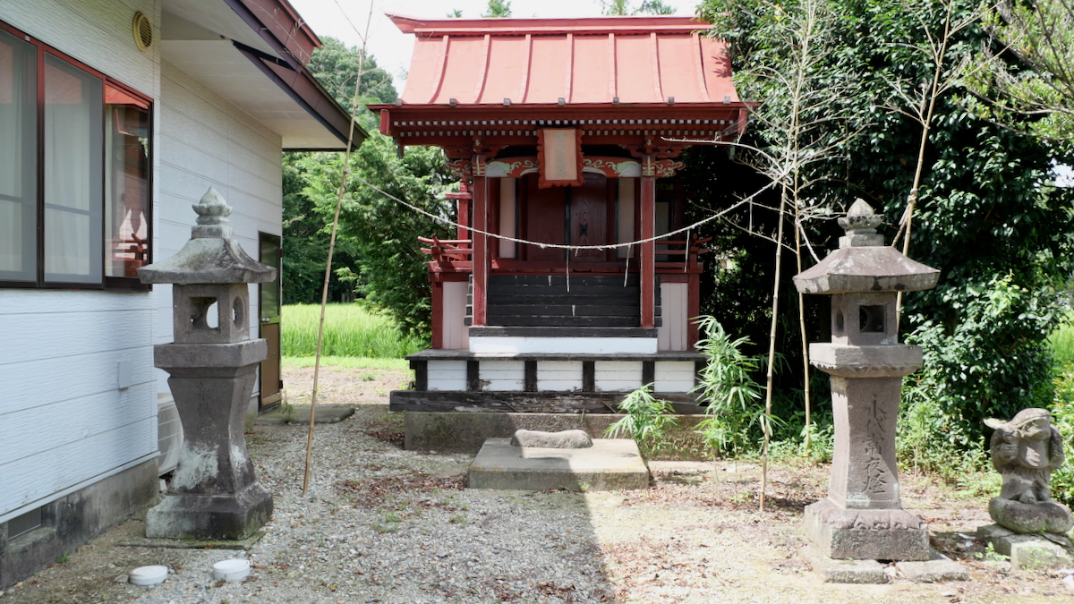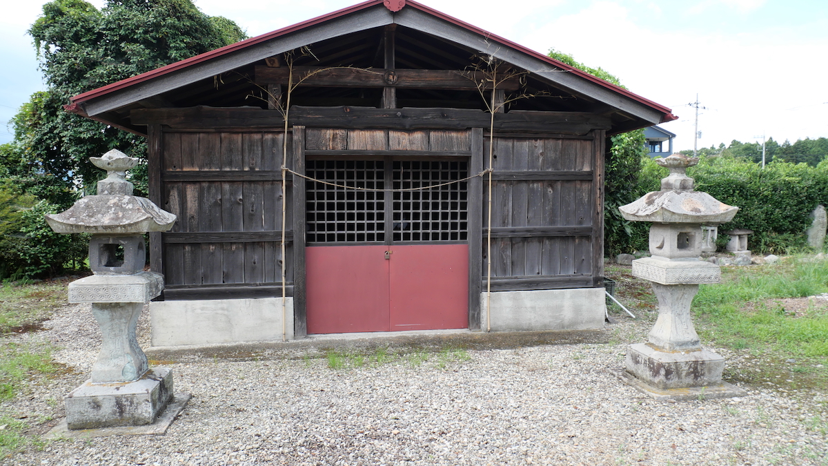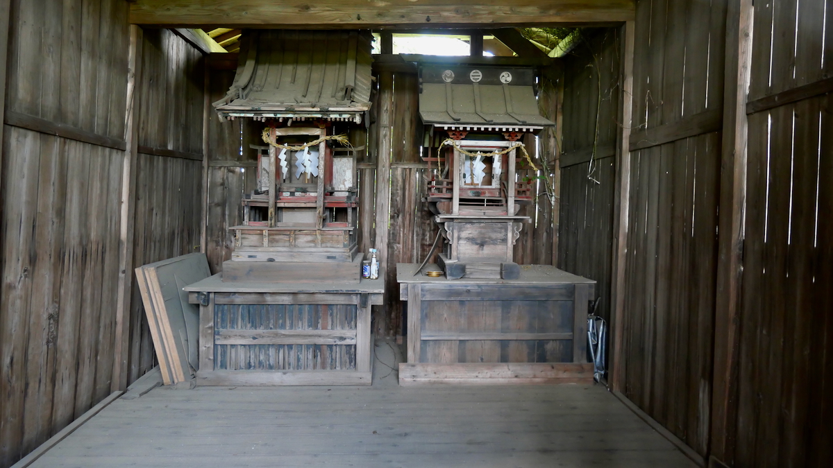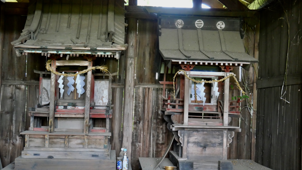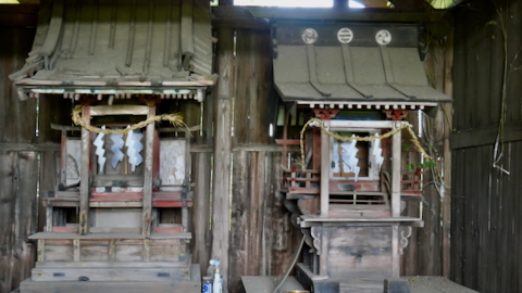 鳥居があるわけでもなく見過ごしそうだ。覆屋内には木製祠が二社。