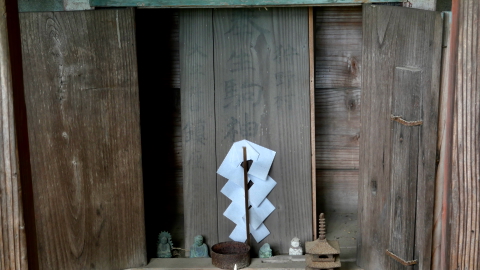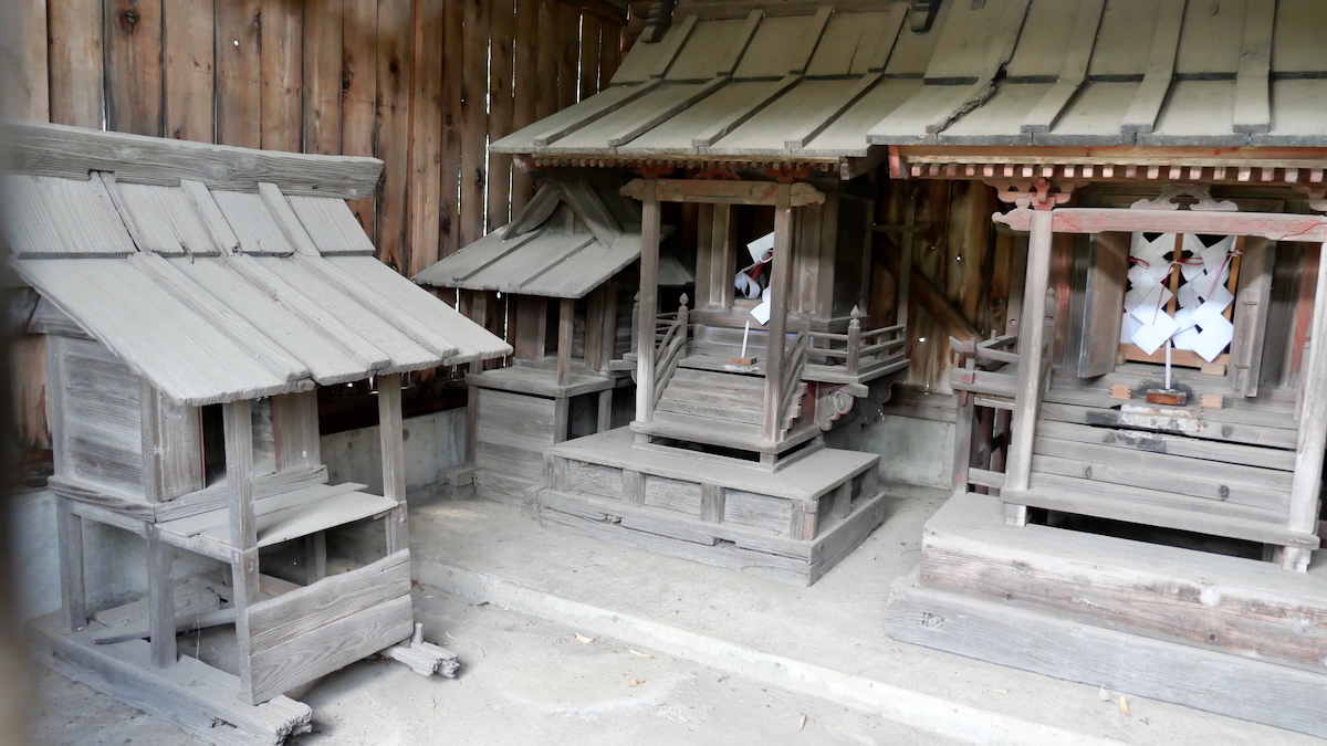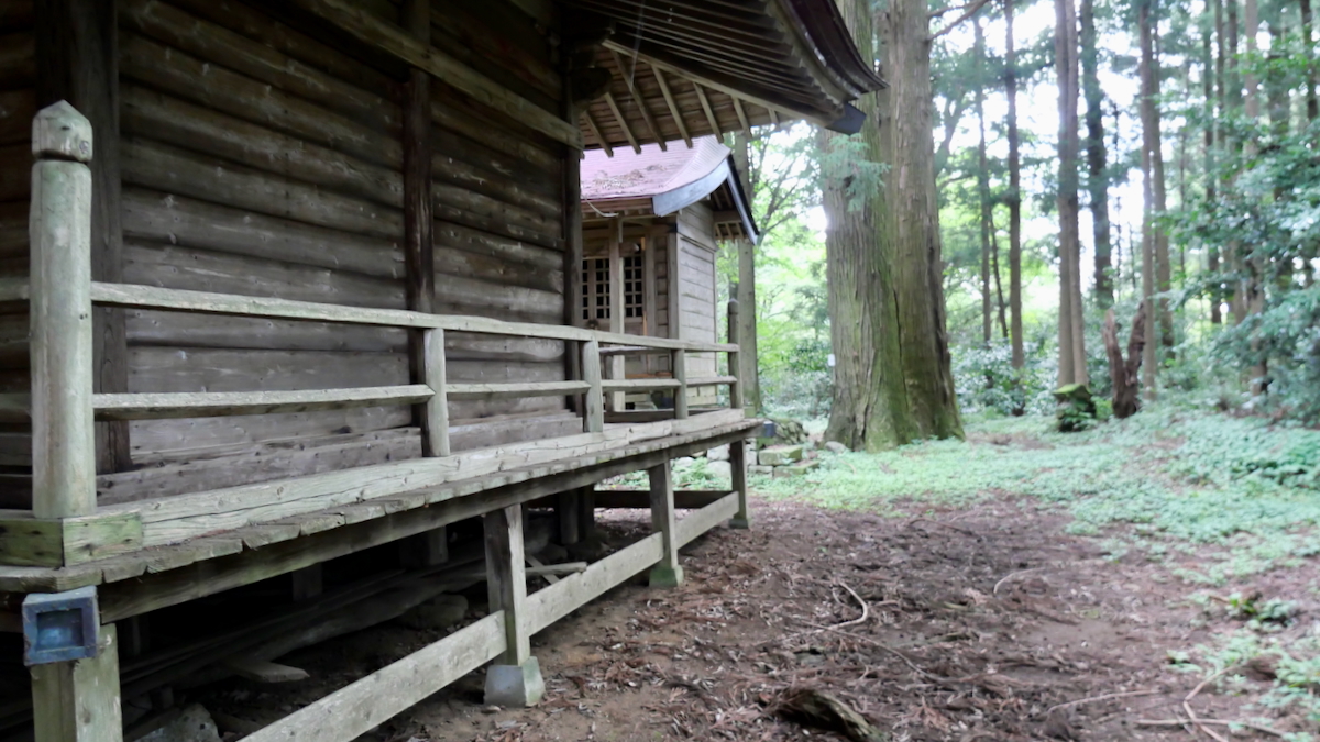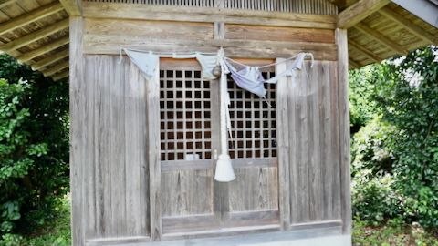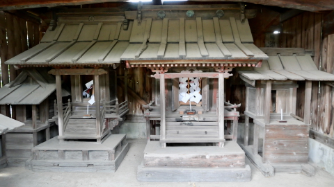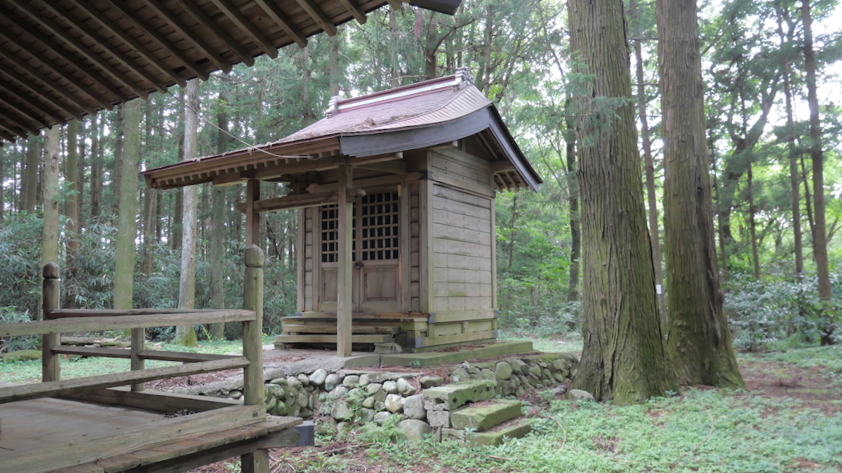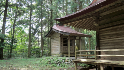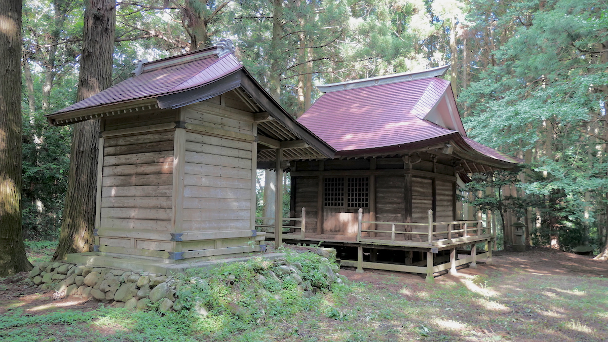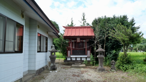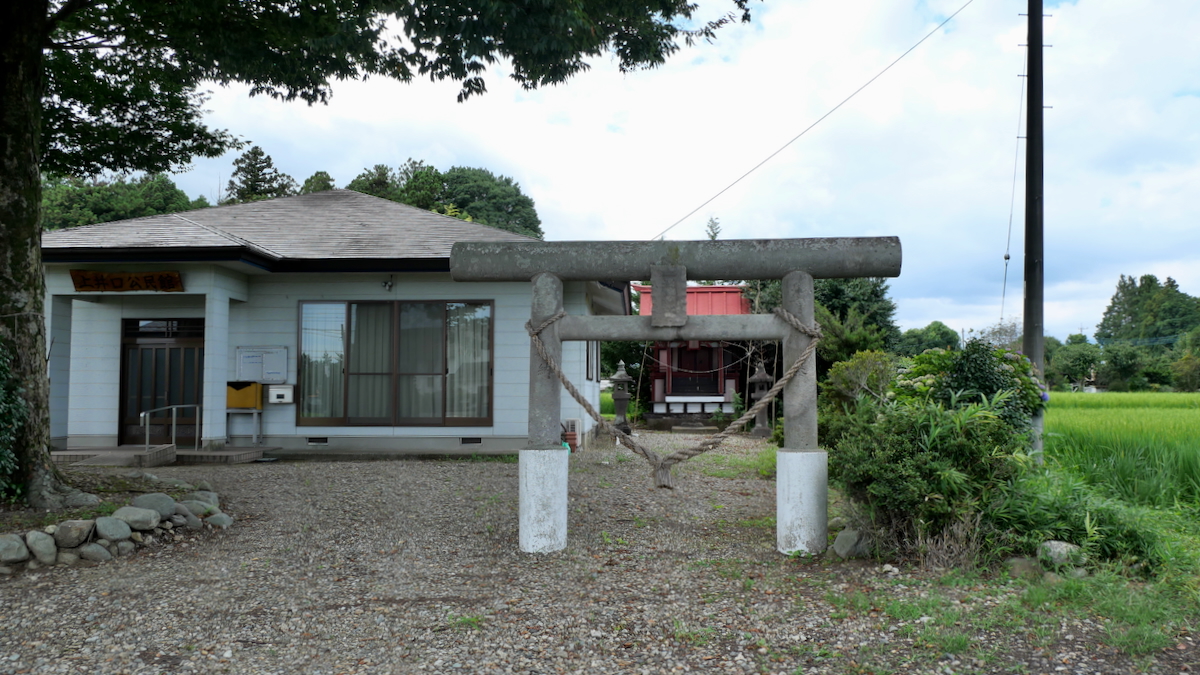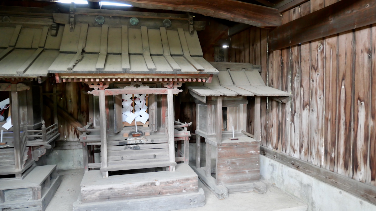 鳥居があるわけでもなく見過ごしそうだ。覆屋内には木製祠が二社。