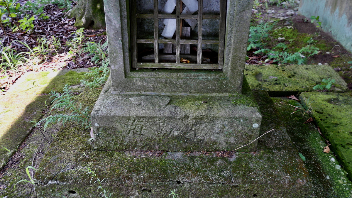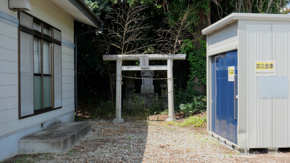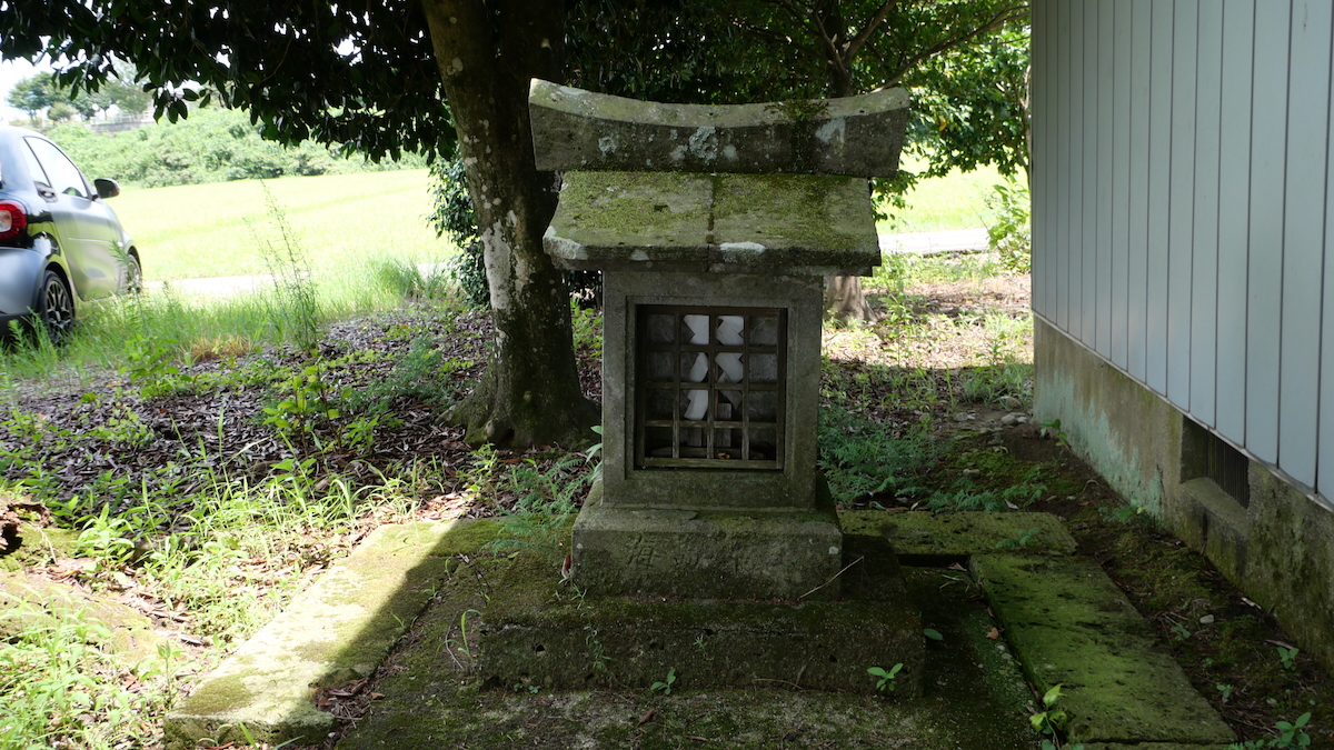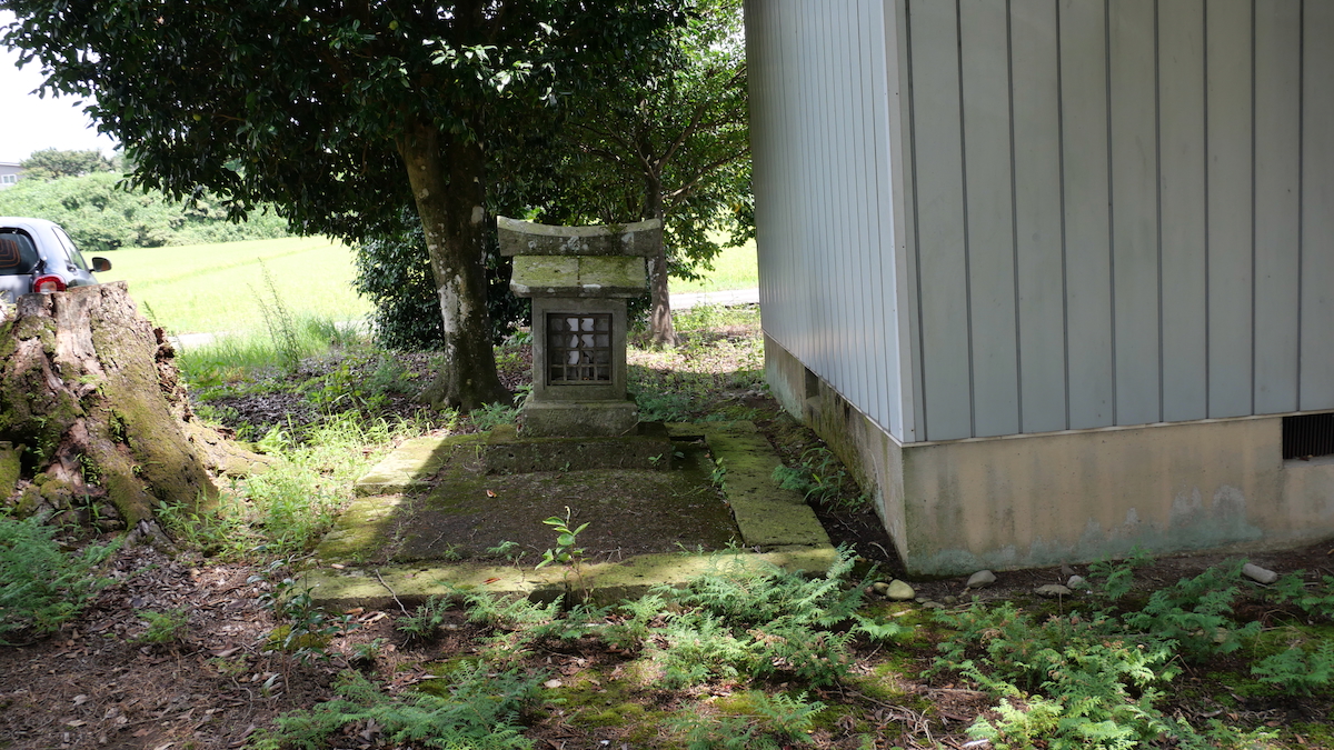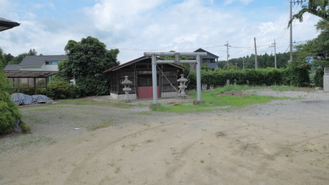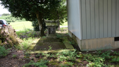 南西の新南公民館に鳥居付きの石宮。