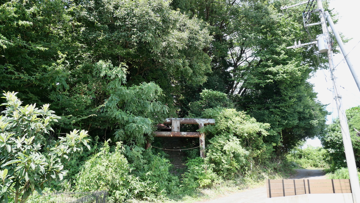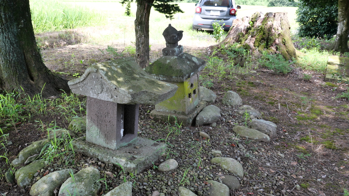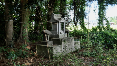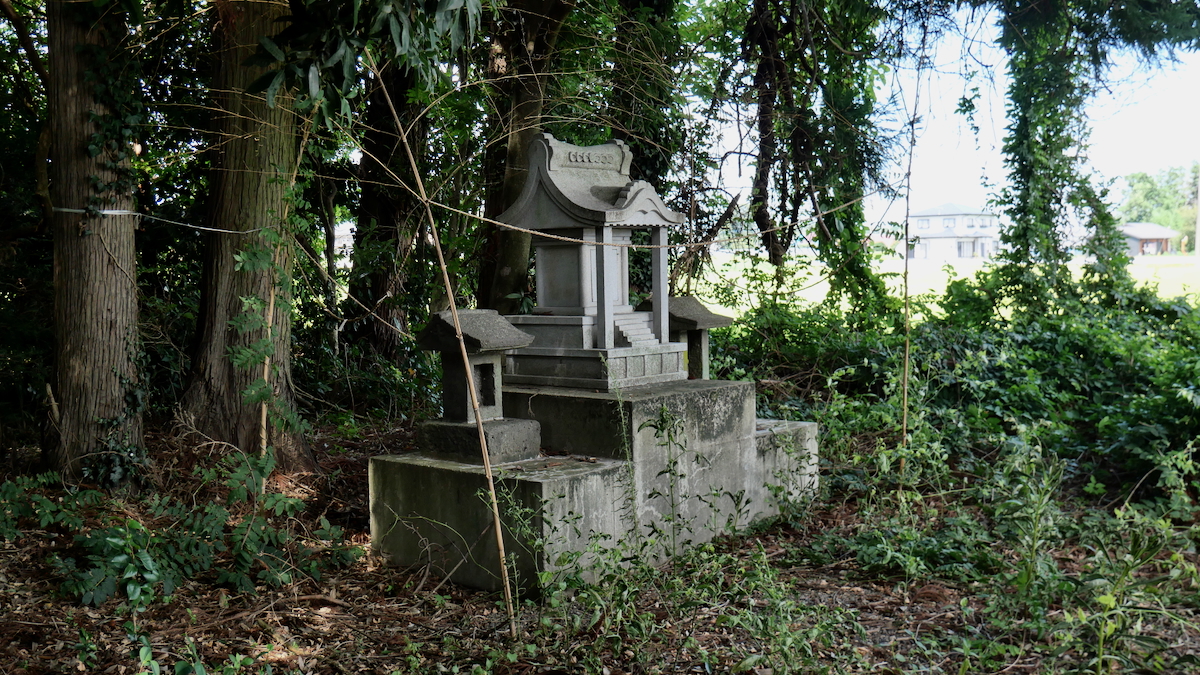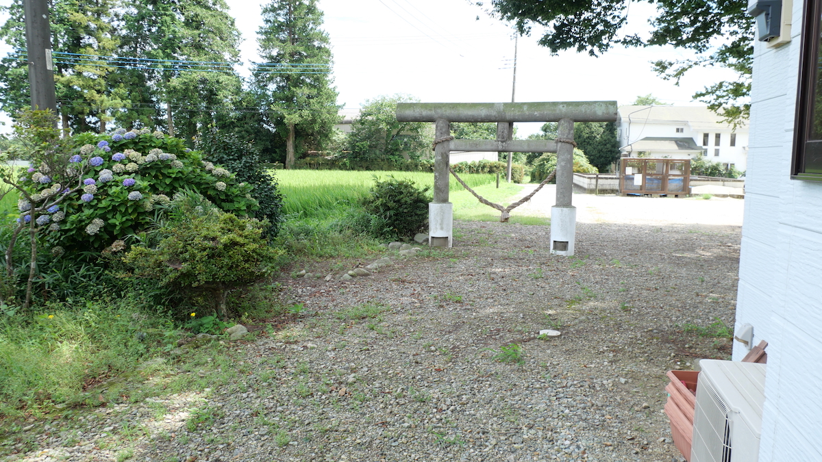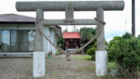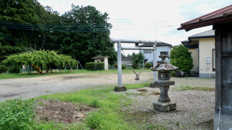 南西の新南公民館に鳥居付きの石宮。