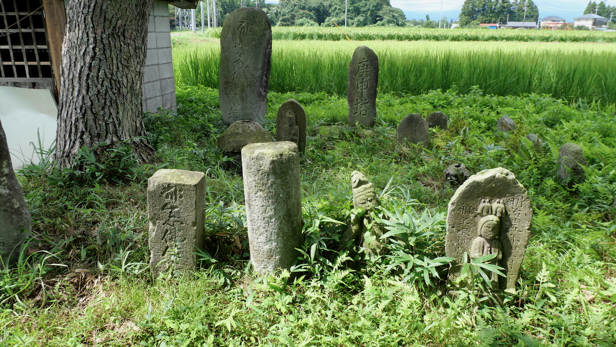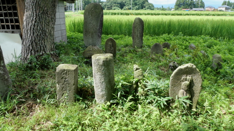 明和元年1764寒念佛供養塔,大正十年1921馬頭観世音,十九夜塔,庚申塔など多数。
