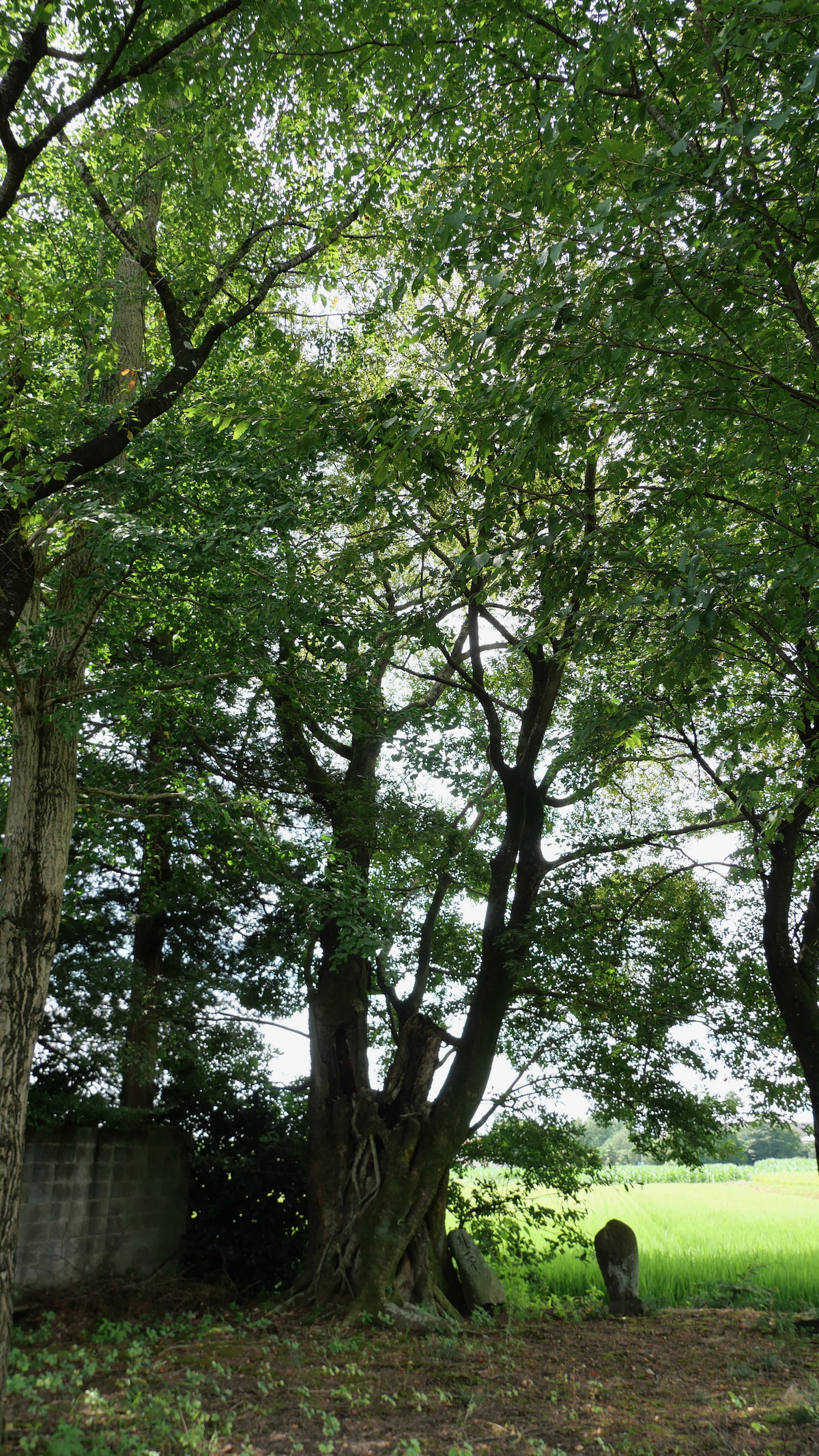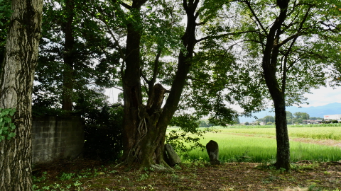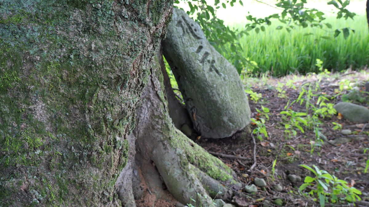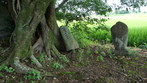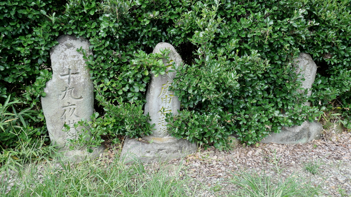 なんしゅもんじゃの木の根元に「二十三夜塔」「六手金剛」