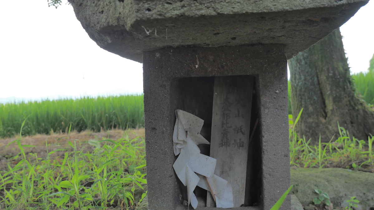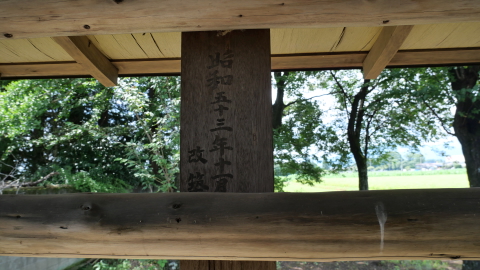 文化四卯十一月石宮1807に高柳村中松本某の字。神札に「大山祇神/大宜都比賣神」