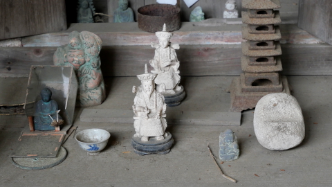 | 多数の陶製狛犬 |