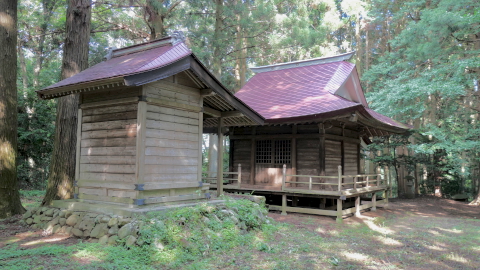 本社は大同二年807の創立にして字狩野道下那須原野に接したる地に小祠を建て村社と稱せしか屢野火のために焼失せり 故に弘化二年1845七月今の地に移遷しと 社域四百四十四坪字精進塲道下に在り