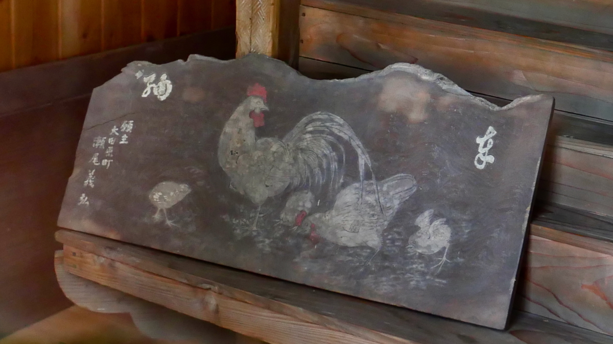 【鶏鳥神社の絵馬】有形民俗文化財で紹介されている。(けいちょうじんじゃのえま)とルビが振ってあるが[にわとりじんじゃのえま]が正しい。
