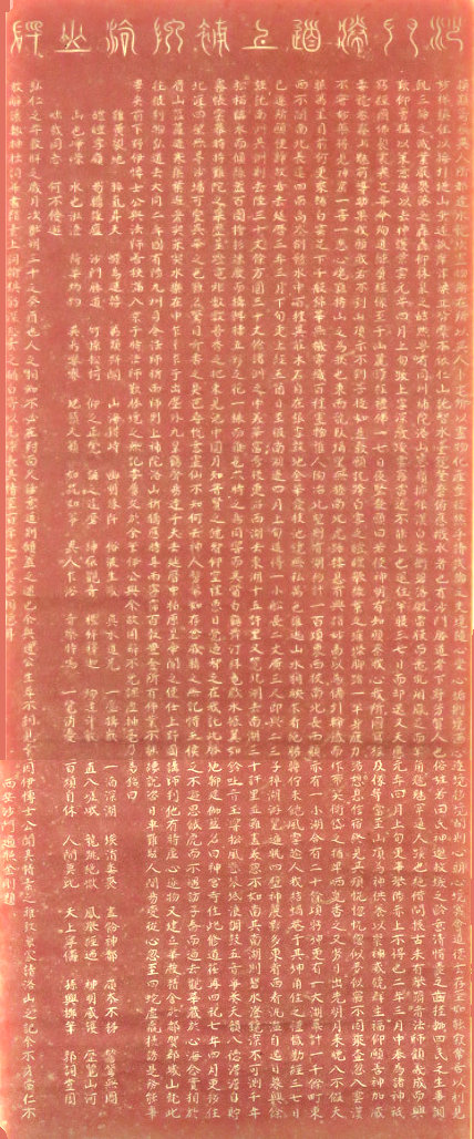 二年三月中 奉為諸神祇 冩經圖佛 [裂裳裹]足 弃命殉道 [繦]負經像 至于山麓 [讀]經禮佛 一七日夜 堅發誓曰 若使神明有知 願[察]我[心] 我[所圖]冩經及像[等] [當至]山頂 爲[神]供養 以[崇]神威 饒群生福 仰願 善神加威 [毒龍巻霧] 山魅前導 助果我願 我若不到山頂 亦不到(至)菩提