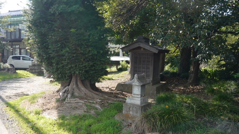 創建年不詳。大日権現と称した。古墳のように見えるが神社を建立するために塚を築いたもの。拝殿天井に着色絵。樹齢400年超の大ケヤキ。解説板の社号のルビは[こう]である。『栃木県神社誌』平成18年版では[こくふ]となっているが,地名も[こう]なので[こう]でいいだろう。447坪。