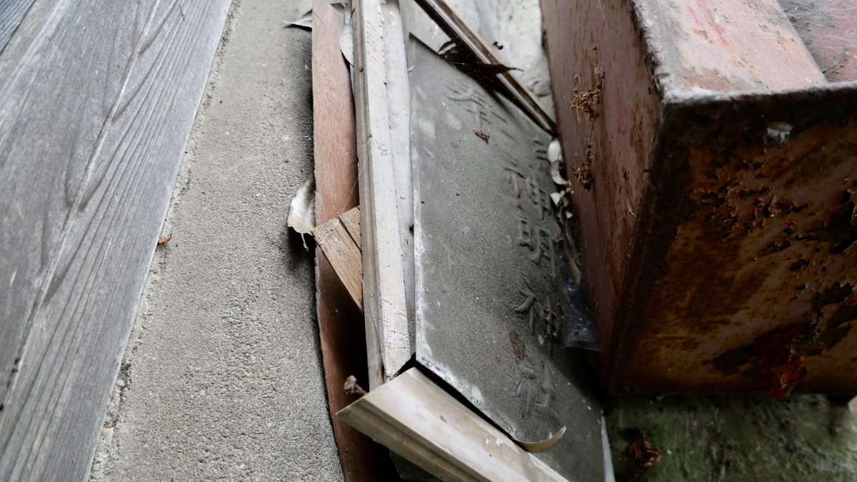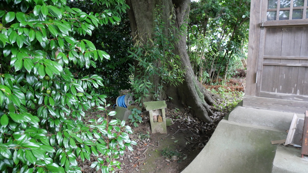 詳しいことは分からない。68坪の境内に小ぶりのトタン葺木製祠,石宮二基。