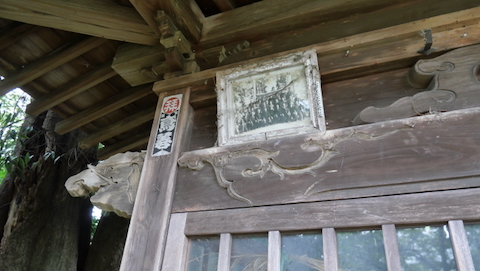 賽銭箱の裏側に「神明神社」額。