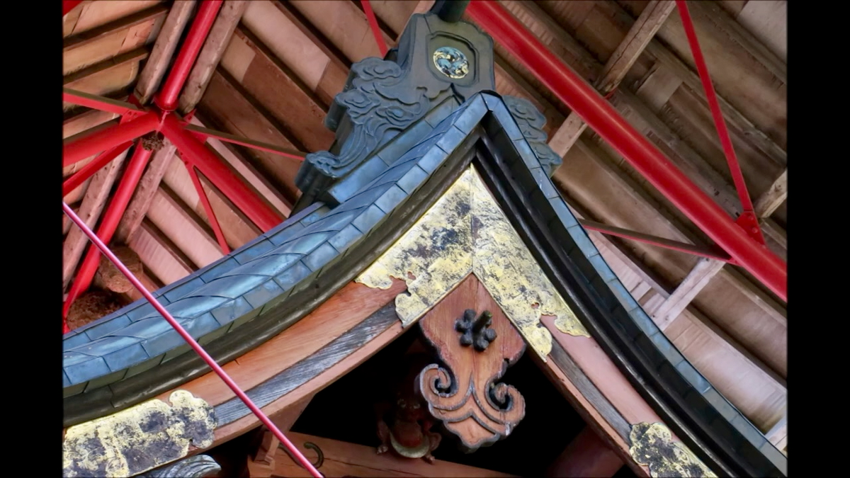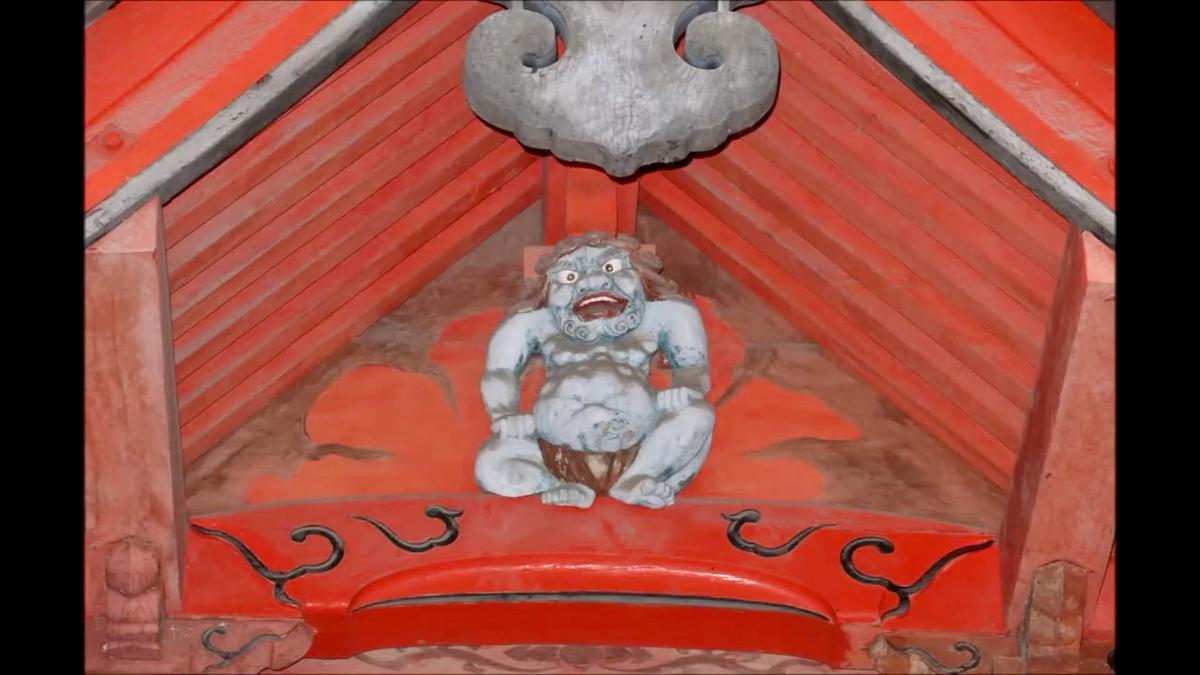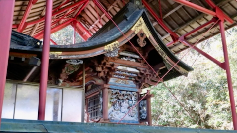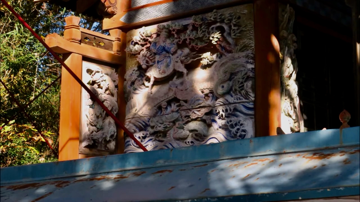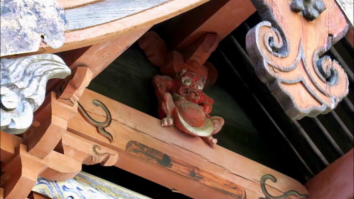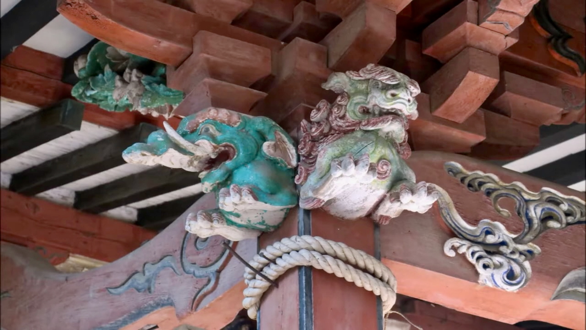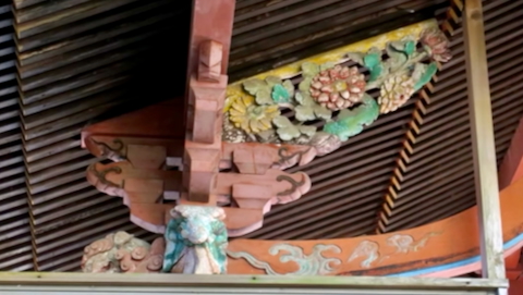 本殿の素盞嗚命の八岐大蛇退治などの彩色彫刻がみごと。