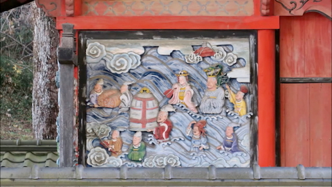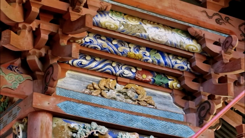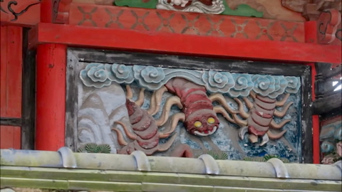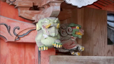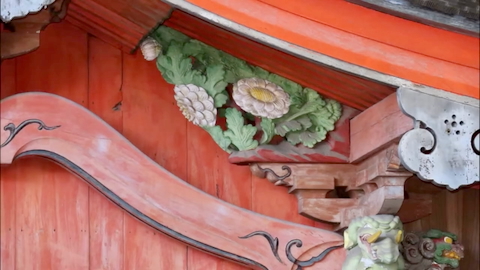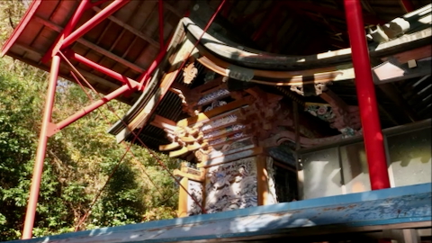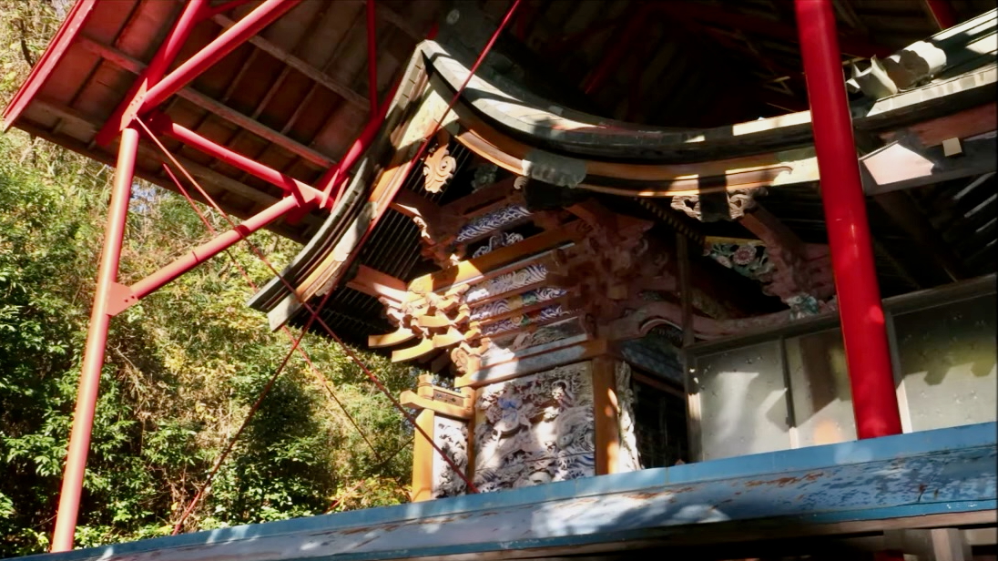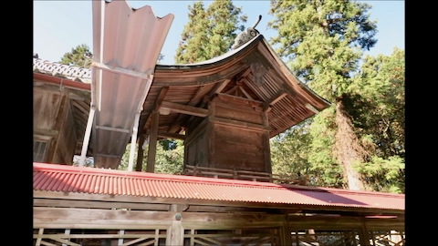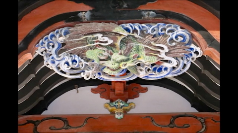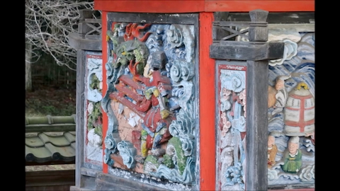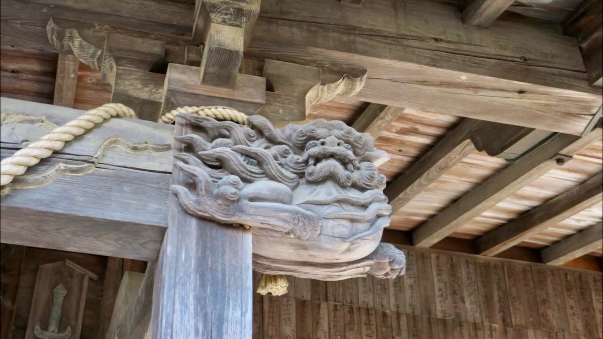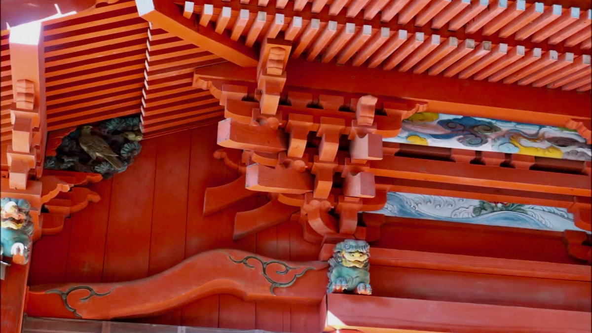 本殿の素盞嗚命の八岐大蛇退治などの彩色彫刻がみごと。