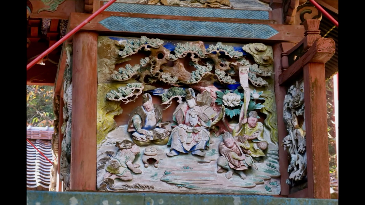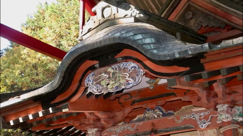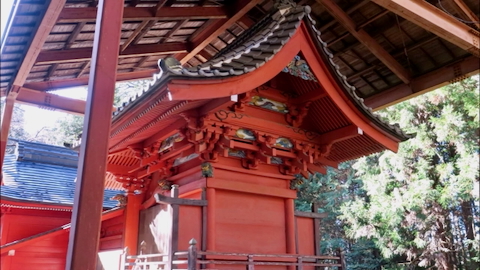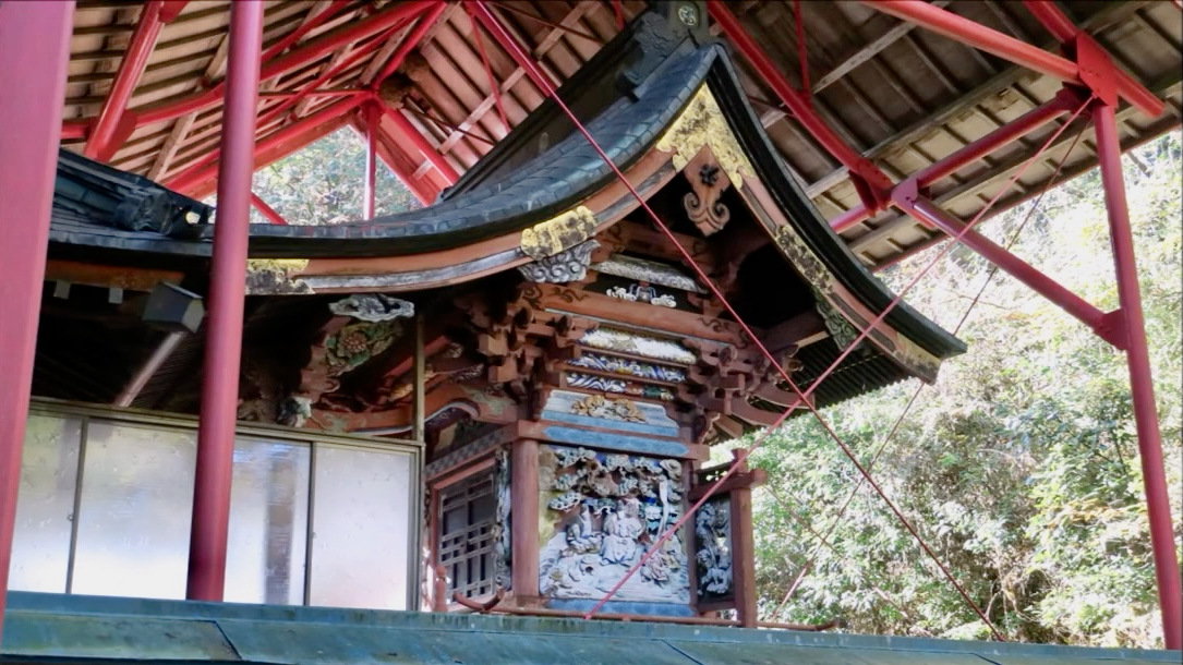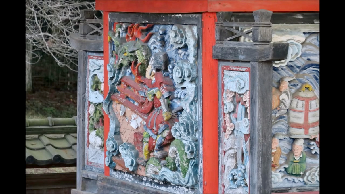 天慶五年942藤原秀郷が創建。本殿に彩色彫刻。