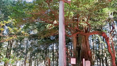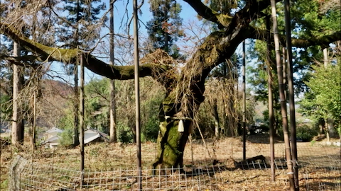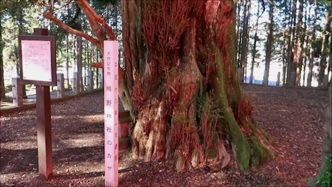 御神木の榧kayaは目通り5m超,樹高20m,樹齢500年超。