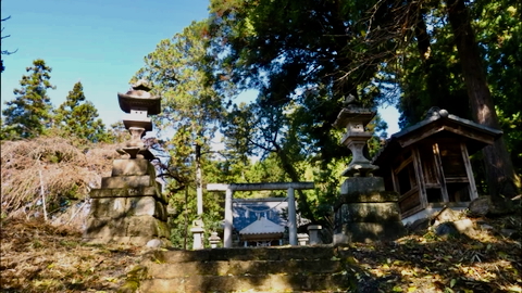 建物本社間口一尺七寸奥行二尺に寸石造 拜殿間口一丈四尺奥行九尺コケラ葺 境内地六坪一合五夕 群山重畳の中突兀として高く聳ゆるものは根本山なり 本社は即ち其項に鎭座す 滿山老樹欝茂奇巖峨々として飛泉珠を飛ばし異艸香を放つ 幽邃極まりて却つて寂寥眞に仙襄靈域たるの想あり 若し夫れ秋氣淸涼の候には楓樹千万錦を織り紅を染む美觀言ふべからず 一度び吟笻を曳いて登山せば淸風自ら湧くが如く靈氣身を襲ひて轉た天地の大寂に入るを感ぜん