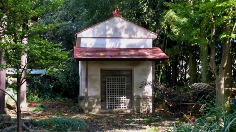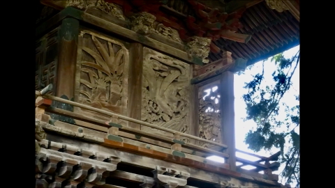 46坪の境内に権現造の小ぶりの石宮。中沖地区。岩船町小野寺との境辺りの山中か。見つからない。