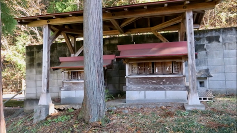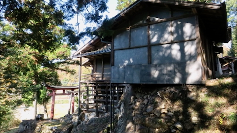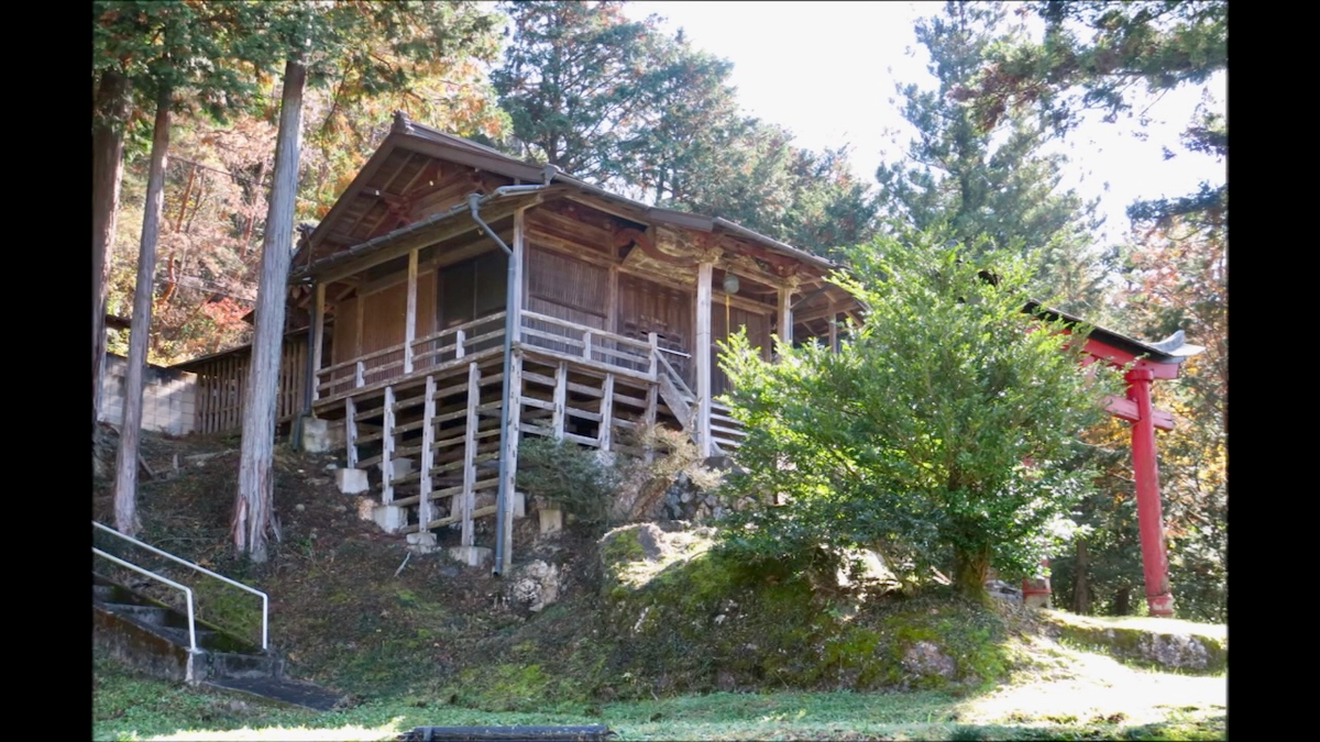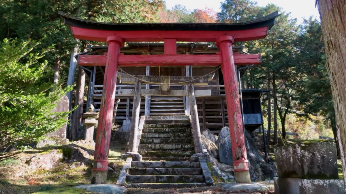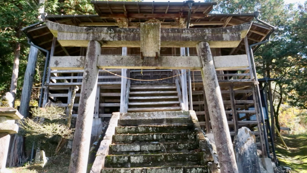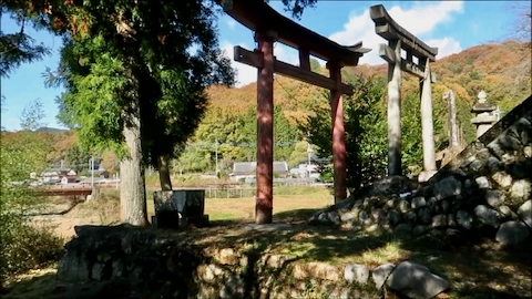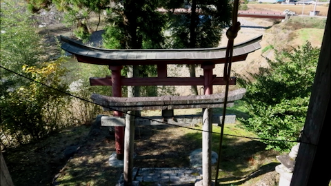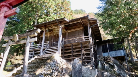戸奈良の鹿嶋神社からさらに6kmほど奥に行くと右手に鳥居が見える。