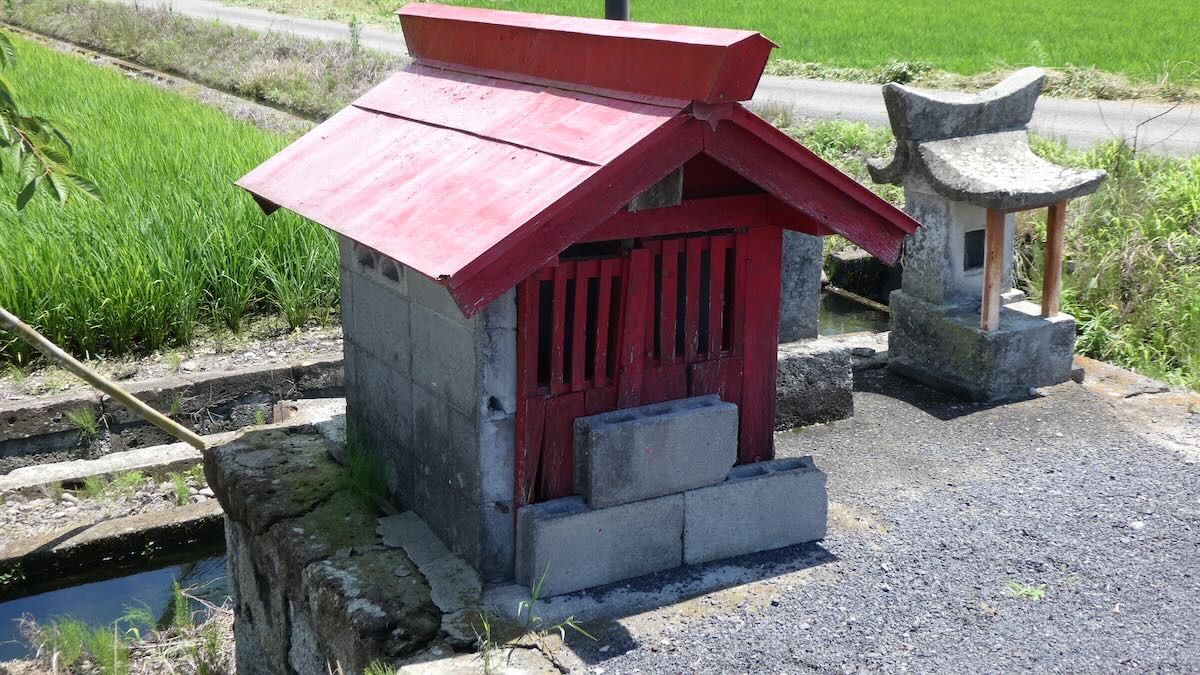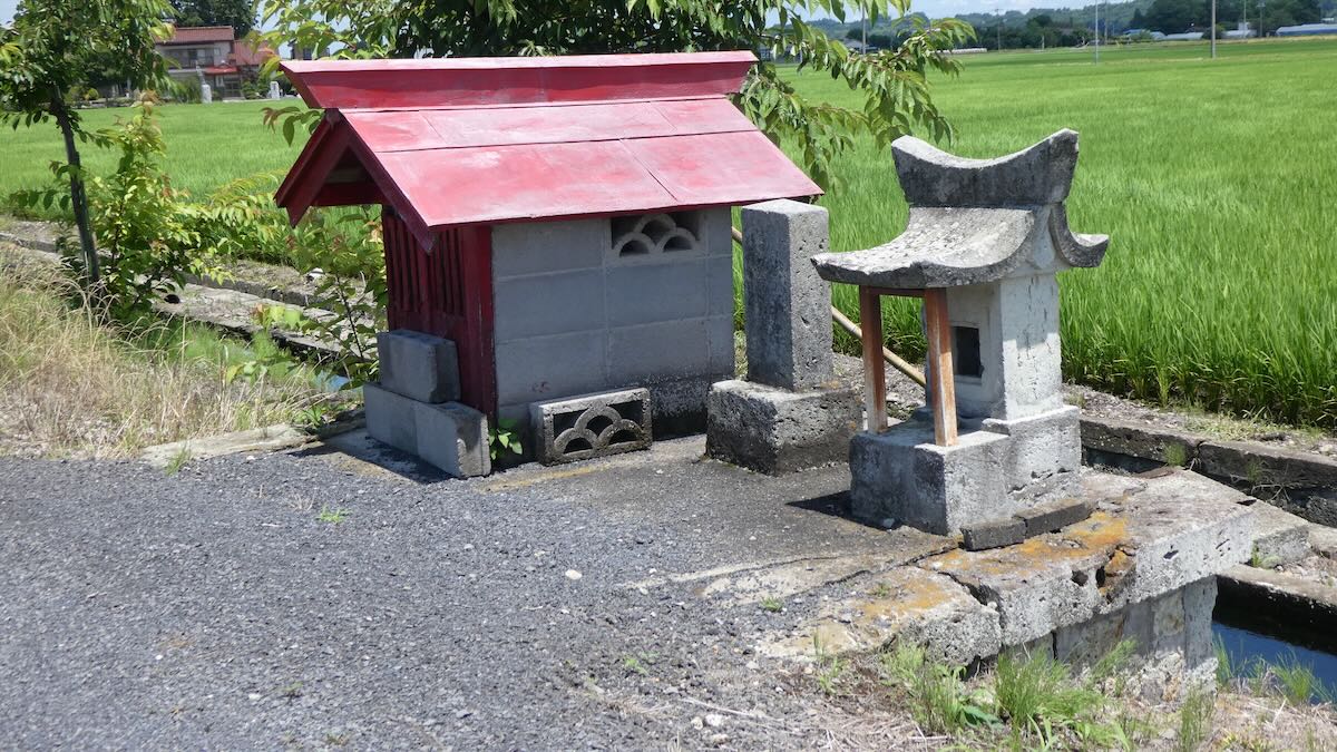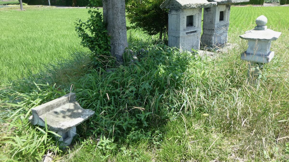 | 南隣りのお宅の神社 | 丸栃物産の社 | 田の先に石祠 |
