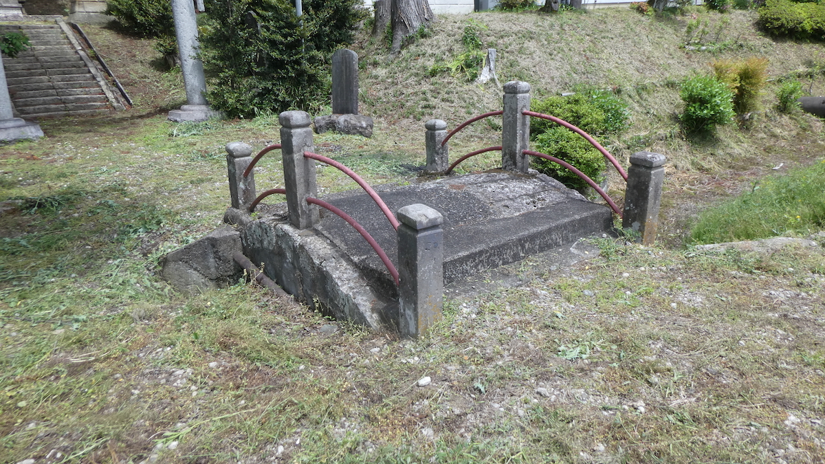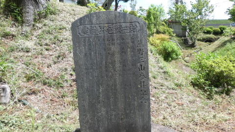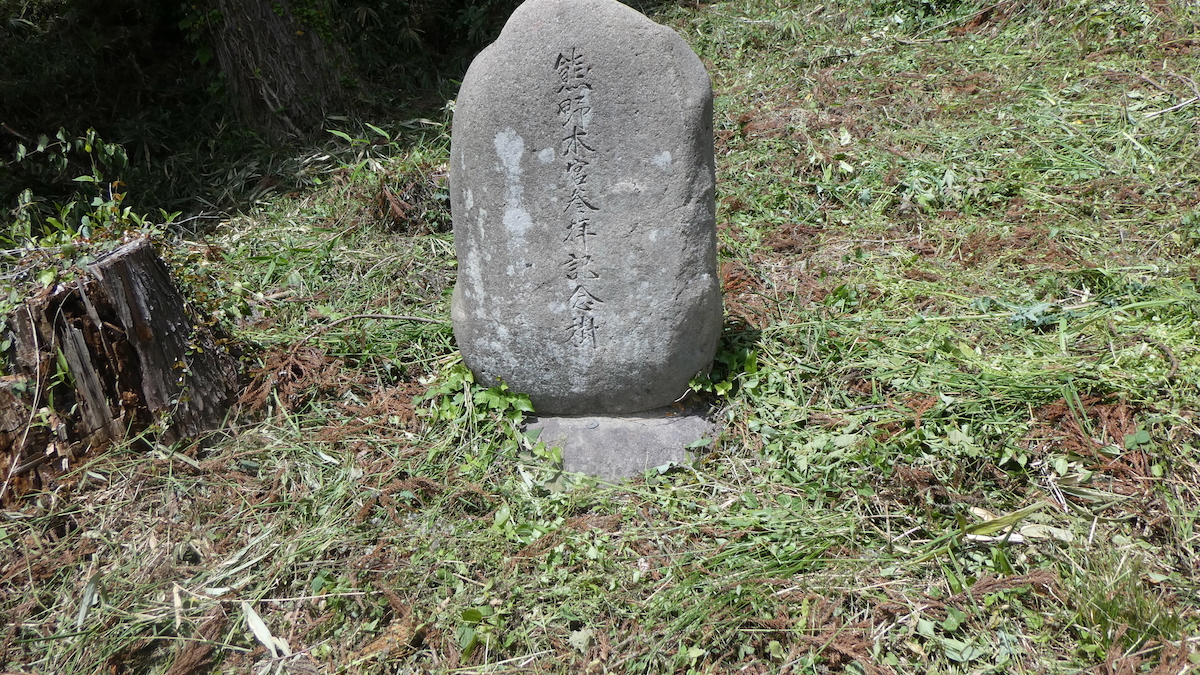 「天保十三年1842 湯殿山」の石塔が二の鳥居左手に保存されている。