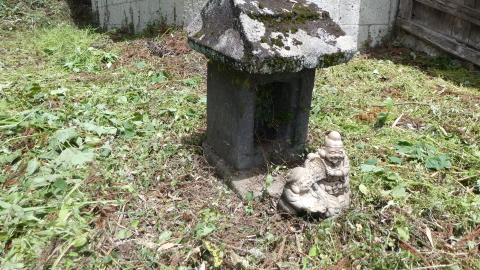 熊野神社から西に向かい東北線を越えた水田地帯にあるらしいのだが,見つからない。大谷石の壁に瓦葺の覆屋。