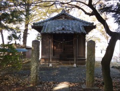 石製の神明鳥居をくぐる。本殿左手に菅原道真の天満宮があり,右手の小殿には大1社,わきに小2社あるので。計4社。