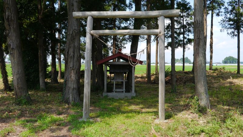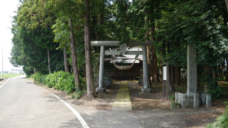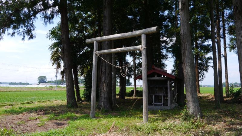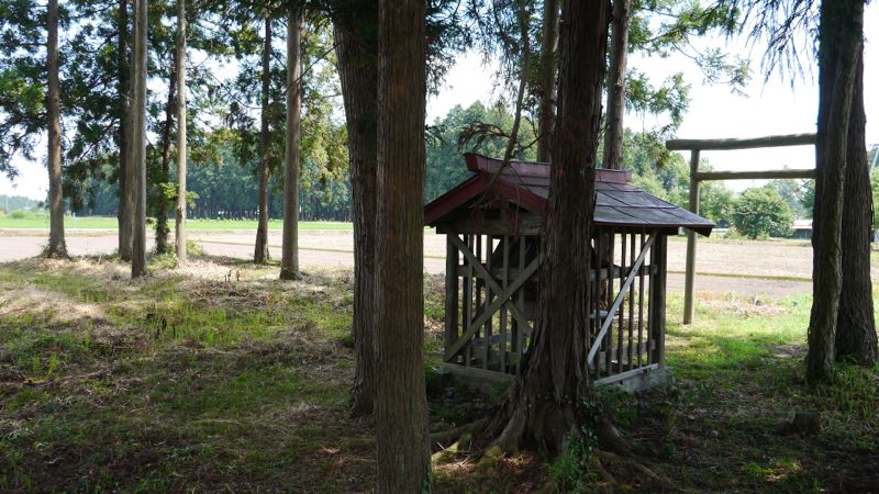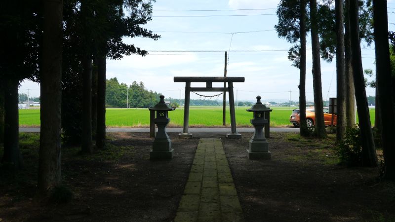「道の駅はが」の南1.5キロ。五行川左岸の田園地帯に鎮座。すぐ南に市貝赤羽の高龗神社。